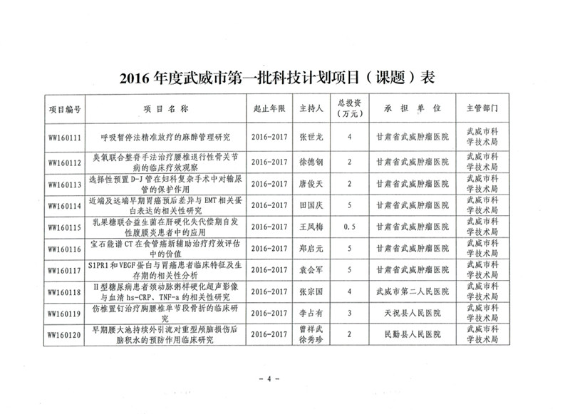 科研項目---2016年度武威市第一批科技計劃項目
