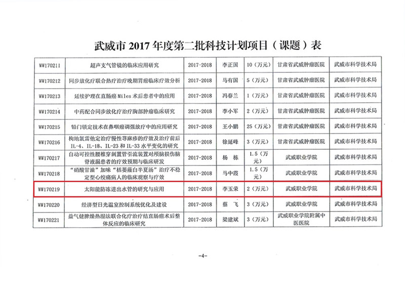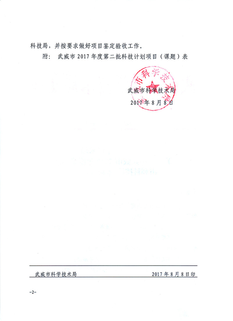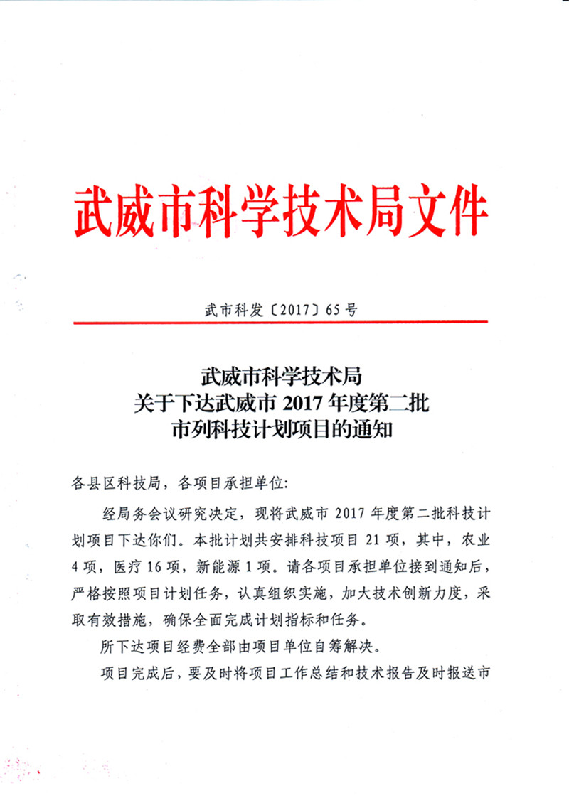 科研項目---2017年度武威市第二批科技計劃項目