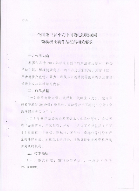 關(guān)于組織參加全國(guó)第三屆平安中國(guó)微電影微視頻微動(dòng)漫比賽的通知