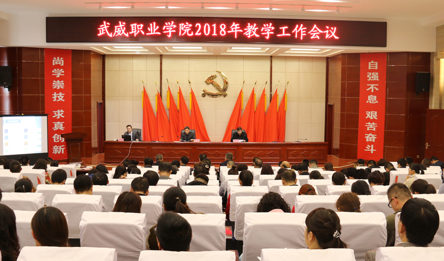 黨委副書(shū)記趙明對(duì)學(xué)院2017年教學(xué)工作做了簡(jiǎn)要回顧與總結(jié),結(jié)合全國(guó)全省教育工作會(huì)議精神,深入分析了學(xué)院目前面臨的困難與存在的問(wèn)題,從八個(gè)方面對(duì)2018年學(xué)院教學(xué)重點(diǎn)工作做了安排部署。一是加強(qiáng)思想政治建設(shè),貫徹落實(shí)中央決策部署。學(xué)習(xí)貫徹習(xí)近平新時(shí)代中國(guó)特色社會(huì)主義思想和黨的十九大精神,貫徹落實(shí)全國(guó)教育大會(huì)精神,細(xì)化落實(shí)職業(yè)教育具體工作措施。二是深化改革,增強(qiáng)辦學(xué)活力。堅(jiān)持依法治校,繼續(xù)完善內(nèi)部治理體系,加強(qiáng)學(xué)術(shù)委員會(huì)、職稱評(píng)審委員會(huì)建設(shè),健全管理體系和運(yùn)行機(jī)制,大力推進(jìn)人才培養(yǎng)模式改革和招生考試制度改革。三是強(qiáng)化內(nèi)涵,全力推進(jìn)優(yōu)質(zhì)高職院校建設(shè)。抓實(shí)推進(jìn)優(yōu)質(zhì)高職院校6個(gè)模塊19個(gè)項(xiàng)目94項(xiàng)任務(wù)312條子任務(wù)的建設(shè)工作,加強(qiáng)內(nèi)部協(xié)調(diào),全力推進(jìn)。加強(qiáng)專業(yè)內(nèi)涵建設(shè)和實(shí)踐教學(xué)內(nèi)涵建設(shè),建立一批優(yōu)質(zhì)特色專業(yè)和一批高水平生產(chǎn)性實(shí)訓(xùn)基地;積極開(kāi)展創(chuàng)新創(chuàng)業(yè)教育實(shí)踐活動(dòng),加大社會(huì)培訓(xùn)力度,積極探索開(kāi)展國(guó)際合作與交流;加強(qiáng)智慧校園和校園文化建設(shè)。四是優(yōu)化結(jié)構(gòu),全力打造一批高水平優(yōu)質(zhì)特色專業(yè)。利用直屬附屬醫(yī)院、校辦企業(yè)武威泰豐新能源有限責(zé)任、甘肅(武威)國(guó)際陸港和武威保稅物流中心等優(yōu)勢(shì),加快重點(diǎn)專業(yè)建設(shè)力度,打造3~5個(gè)國(guó)家級(jí)高水平優(yōu)質(zhì)特色專業(yè)。五是合作培養(yǎng),著力打造專兼結(jié)合的高水平教師隊(duì)伍。大力實(shí)施教師素質(zhì)提升工程,完善同濟(jì)大學(xué)編制的《武威職業(yè)學(xué)院師資能力提升培訓(xùn)方案》,落實(shí)西安交通大學(xué)、天津職業(yè)大學(xué)簽訂的合作協(xié)議,推進(jìn)教師教學(xué)發(fā)展中心建設(shè)與運(yùn)行,強(qiáng)化專業(yè)帶頭人、新進(jìn)教師、骨干教師、優(yōu)秀青年教師的培養(yǎng)力度。六是育人為本,關(guān)注學(xué)生成長(zhǎng)成才。優(yōu)化育人環(huán)境,開(kāi)足開(kāi)好思想政治類、人文素養(yǎng)提升類課程,開(kāi)展校內(nèi)職業(yè)技能競(jìng)賽,鼓勵(lì)支持參加省級(jí)以上比賽,培養(yǎng)學(xué)生能力。七是深化產(chǎn)教融合,提升社會(huì)服務(wù)水平。充分發(fā)揮職業(yè)教育集團(tuán)作用,深化“職業(yè)教育+產(chǎn)業(yè)園區(qū)+生產(chǎn)基地”的校企合作模式;提升校辦企業(yè)、直屬附屬醫(yī)院的教學(xué)服務(wù)功能;各專業(yè)要拓展產(chǎn)教融合渠道,精準(zhǔn)施策,服務(wù)國(guó)家戰(zhàn)略。八是完善質(zhì)量保障機(jī)制,提升人才培養(yǎng)質(zhì)量。編制并逐步推行教學(xué)工作診斷與改進(jìn)方案,學(xué)習(xí)實(shí)施精細(xì)化管理模式,加大教學(xué)督查力度,規(guī)范教學(xué)秩序,提高教育教學(xué)管理水平。