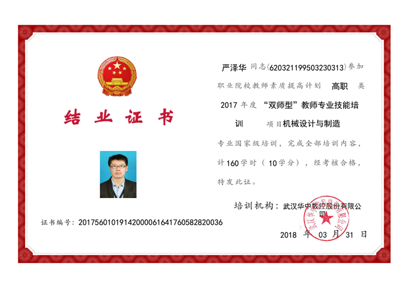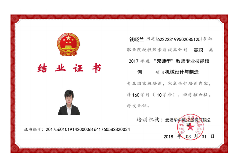 “雙師型”教師專(zhuān)業(yè)技能培訓(xùn)證書(shū)