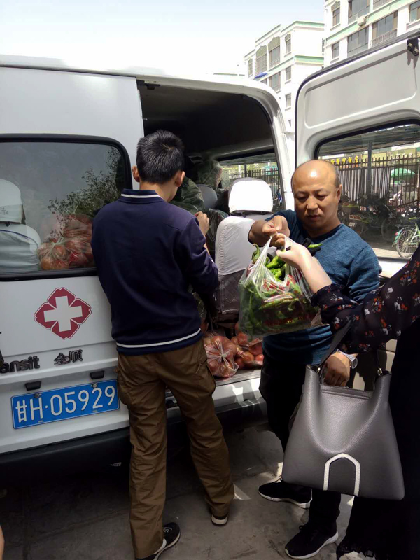 “各科室職工們,來自古浪黃花灘的新鮮蔬菜馬上就到,主要為西紅柿跟隴椒,西紅柿一袋十斤20元,隴椒一袋四斤10元,現(xiàn)隴椒數(shù)量少,需要的請早點來,謝謝大家的支持!……”4月28日上午,駐村干部劉金元又在醫(yī)院微信群里吆喝了一嗓子,大家紛紛拎著袋子前來買菜。