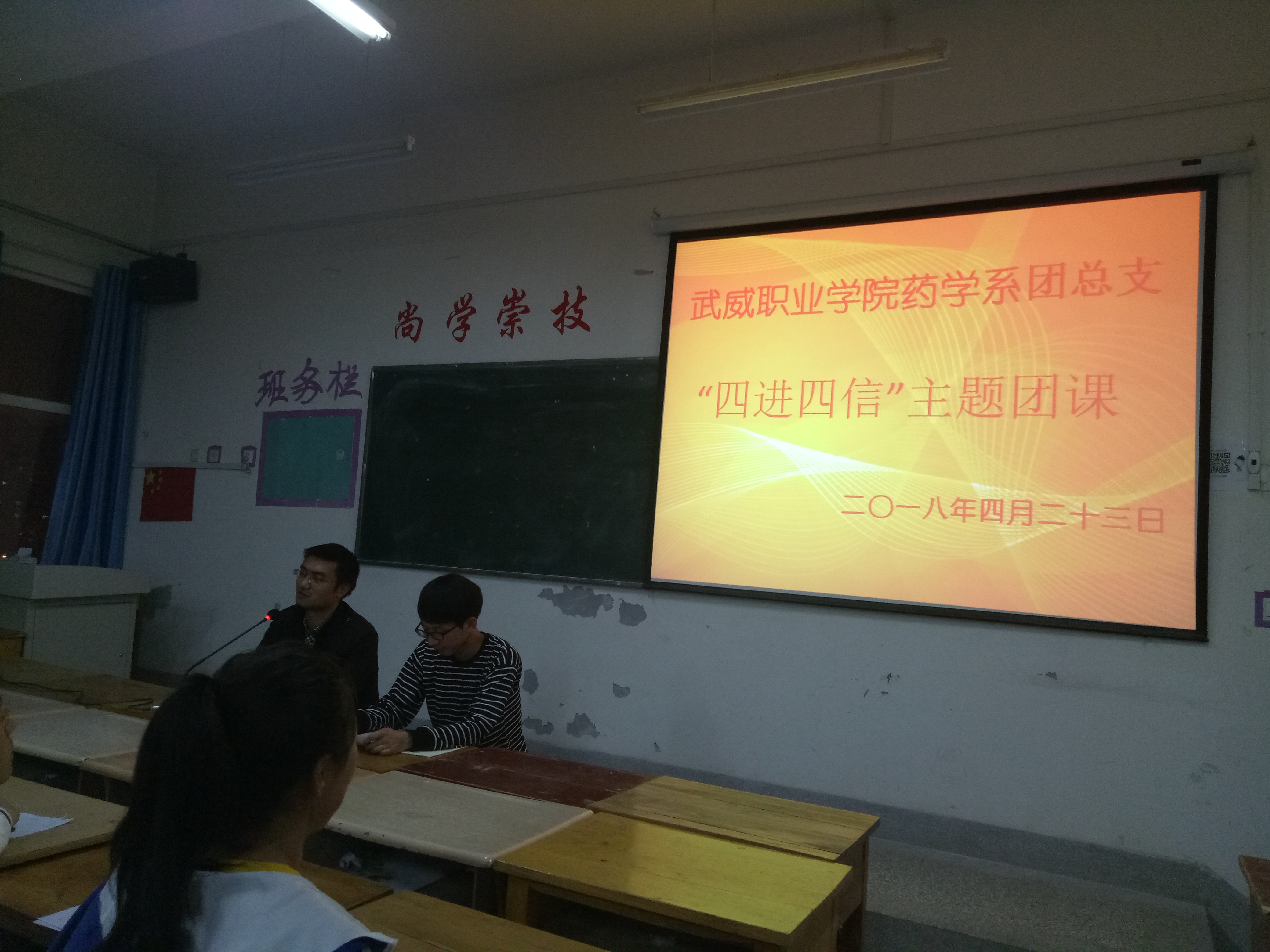 為深入學習宣傳貫徹習近平新時代中國特色社會主義思想,堅持以習近平新時代中國特色社會主義思想武裝團員干部和團員青年學生頭腦,積極推進各項工作開展。2018年4月23日晚,藥學系團總支組織16級團員青年及17級入團積極分子在明遠樓501教室開展關(guān)于“四進四信”的主題團課活動,團課由要藥學系團總支書記陳輝生主持。