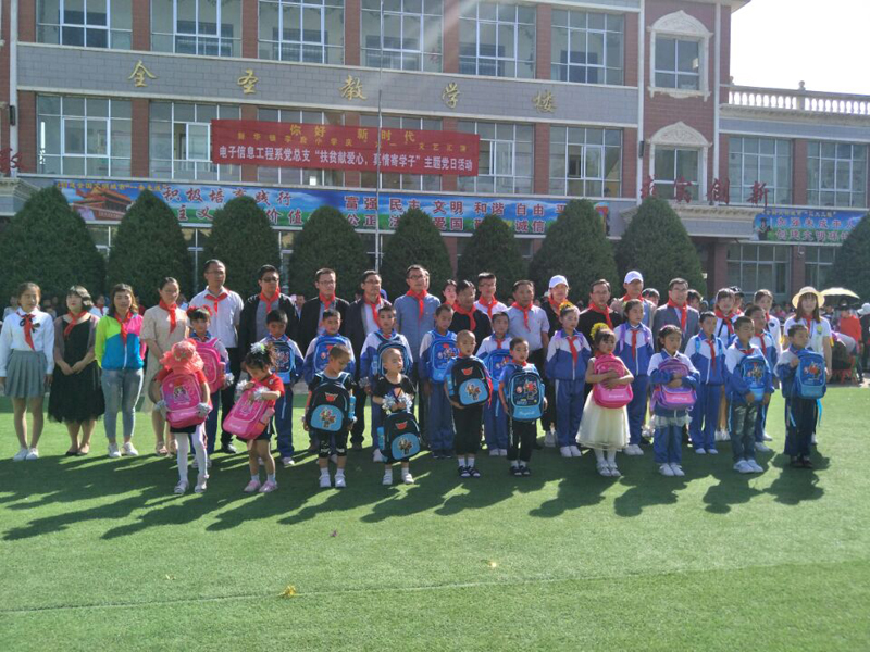 5月31日8點(diǎn),電子信息工程系黨總支全體黨員和學(xué)生入黨積極分子赴涼州區(qū)新華鎮(zhèn)李府小學(xué)開(kāi)展“扶貧獻(xiàn)愛(ài)心,真情寄學(xué)子”主題黨日活動(dòng),為精準(zhǔn)扶貧建檔立卡學(xué)生送去了學(xué)習(xí)、生活用品,與孩子們共同度過(guò)了一個(gè)快樂(lè)、祥和的六一國(guó)際兒童節(jié)。