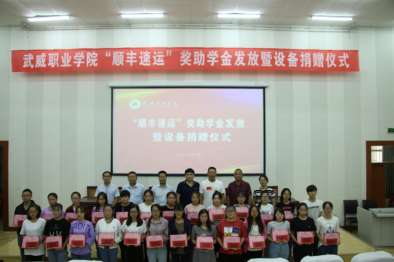 6月26日,武威職業(yè)學院“順豐速運”獎助學金發(fā)放暨設備捐贈儀式在學院正德廳舉行。江蘇順豐速運江蘇順豐通訊服務有限公司副總經(jīng)理張輝華先生,武威職業(yè)學院黨委委員、副院長王永緒同志、江蘇順豐通訊服務有限公司人力資源部經(jīng)理孫潞、項目經(jīng)理高國軍、招聘經(jīng)理明微、經(jīng)濟管理系書記潘從民、主任張伯成、物流專業(yè)教師代表和物流專業(yè)16、17級全體同學及相關(guān)專業(yè)學生代表近200人參加本次儀式。發(fā)放儀式由潘從民主持。