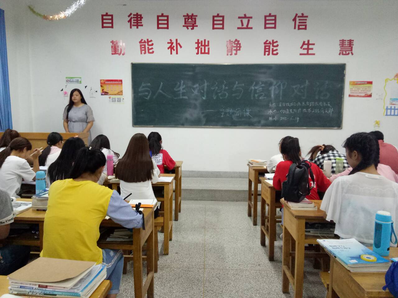 為了引導青年學生提高思想道德修養(yǎng),找準人生方向和成長道路,培育和踐行社會主義核心價值觀,醫(yī)學技術與信息管理系于2018年6月14日在各班教室進行了“與人生對話與信仰對話”的主題團課,旨在提高同學們的政治素養(yǎng),進一步濃郁班級文化氛圍、激發(fā)同學們讀書求知的熱情。