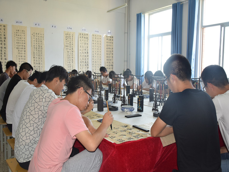 為了更好的響應(yīng)國家在高校推行的“三自”教育精神,豐富校園文化生活,弘揚校園主旋律,創(chuàng)造性開展豐富多彩的活動。新能源學(xué)院結(jié)合實際,近年來,組建了子墨書畫軒、Free-fly輪滑社、正心武術(shù)社等八個社團。子墨書畫軒以為熱愛書畫藝術(shù)的學(xué)生發(fā)掘和培養(yǎng)書畫才能為服務(wù)宗旨。通過開展各類書畫培訓(xùn)、書畫活動與書畫展,加深同學(xué)們對書法、繪畫等藝術(shù)形式的認識,幫助學(xué)生提升書畫水平。社團自成立以來,形成良好的學(xué)習(xí)氛圍,固定在每周二與周四晚八點半到九點半開展活動。今年三月份舉辦的視覺藝術(shù)活動吸引了廣大同學(xué)前來欣賞,調(diào)動起了更多的同學(xué)學(xué)習(xí)書法的熱情。