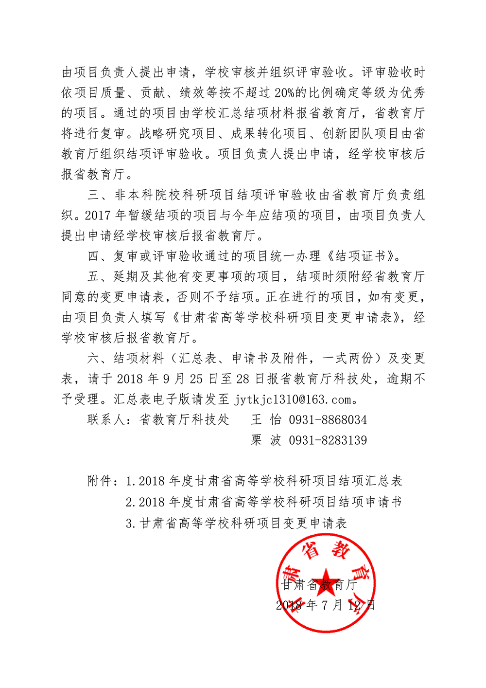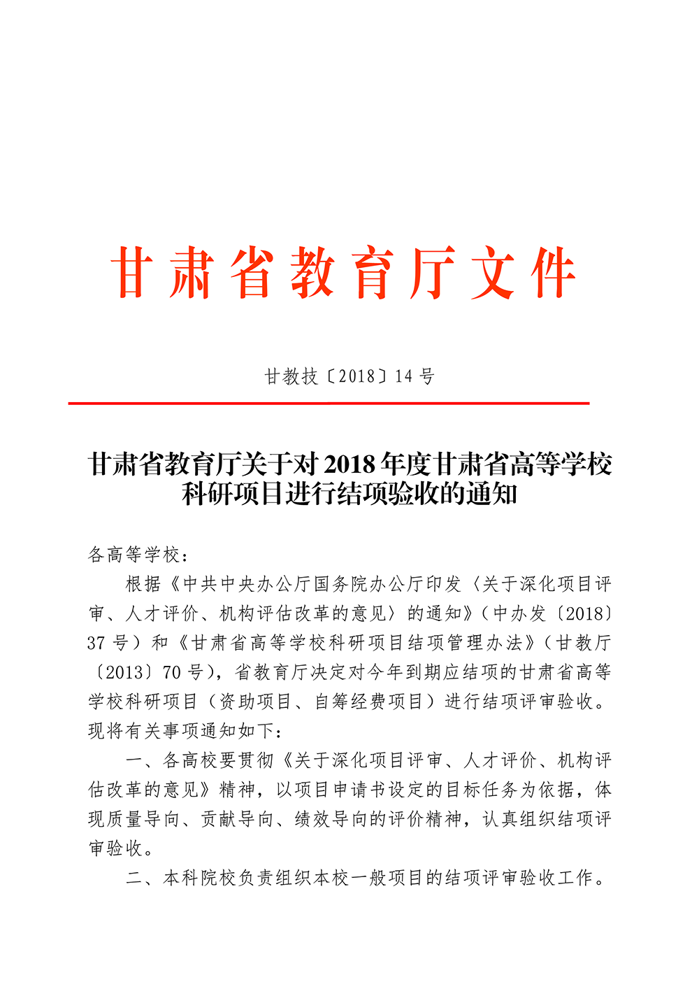 甘肅省教育廳關(guān)于對(duì)2018年度甘肅省高等學(xué)校科研項(xiàng)目進(jìn)行結(jié)項(xiàng)的通知(附件).doc