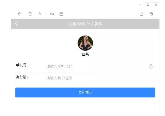 3.完善個(gè)人資料,輸入手機(jī)號碼、身份證號碼,點(diǎn)擊立即提交,提交個(gè)人資料。