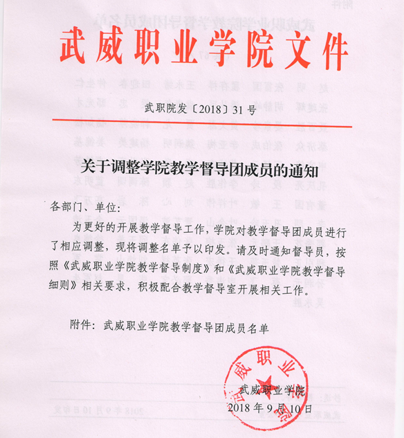 關(guān)于調(diào)整學(xué)院教學(xué)督導(dǎo)團(tuán)成員的通知