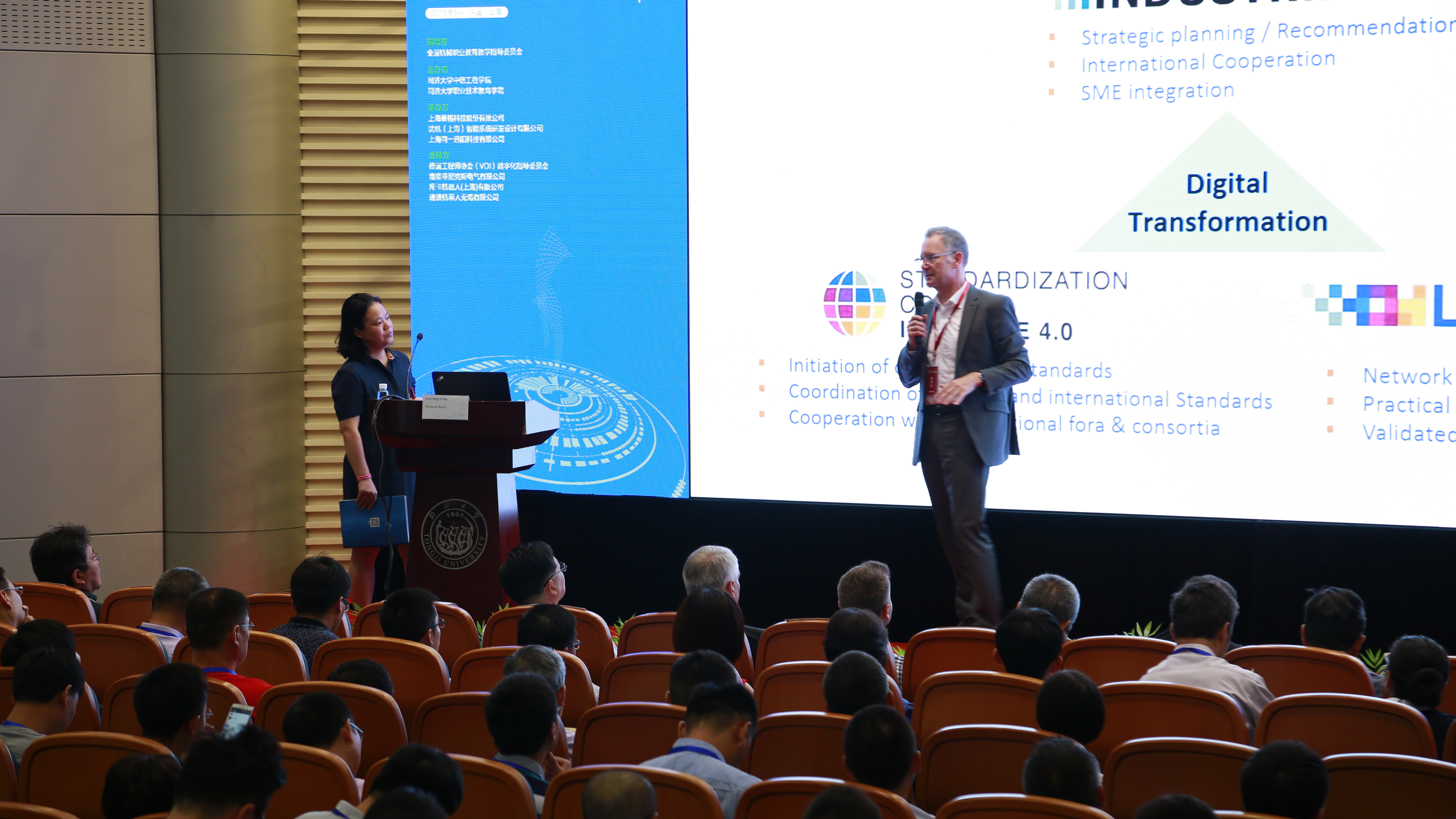 ??? 德國工業(yè)4.0標(biāo)準(zhǔn)制定委員會主席Roland Bent,對德國工業(yè)4.0標(biāo)準(zhǔn)的新發(fā)展進行分享,為與會者提供了極具思想開放和思維拓展的窗口,以及智能制造產(chǎn)教融合的理論實踐依據(jù)。德國工程師協(xié)會教授Christian-Andreas Schumann論述了在全球化和數(shù)字化背景下教育領(lǐng)域網(wǎng)絡(luò)化協(xié)作的重要性,其研究領(lǐng)域的專業(yè)度和內(nèi)容的豐富性令與會者大呼痛快。