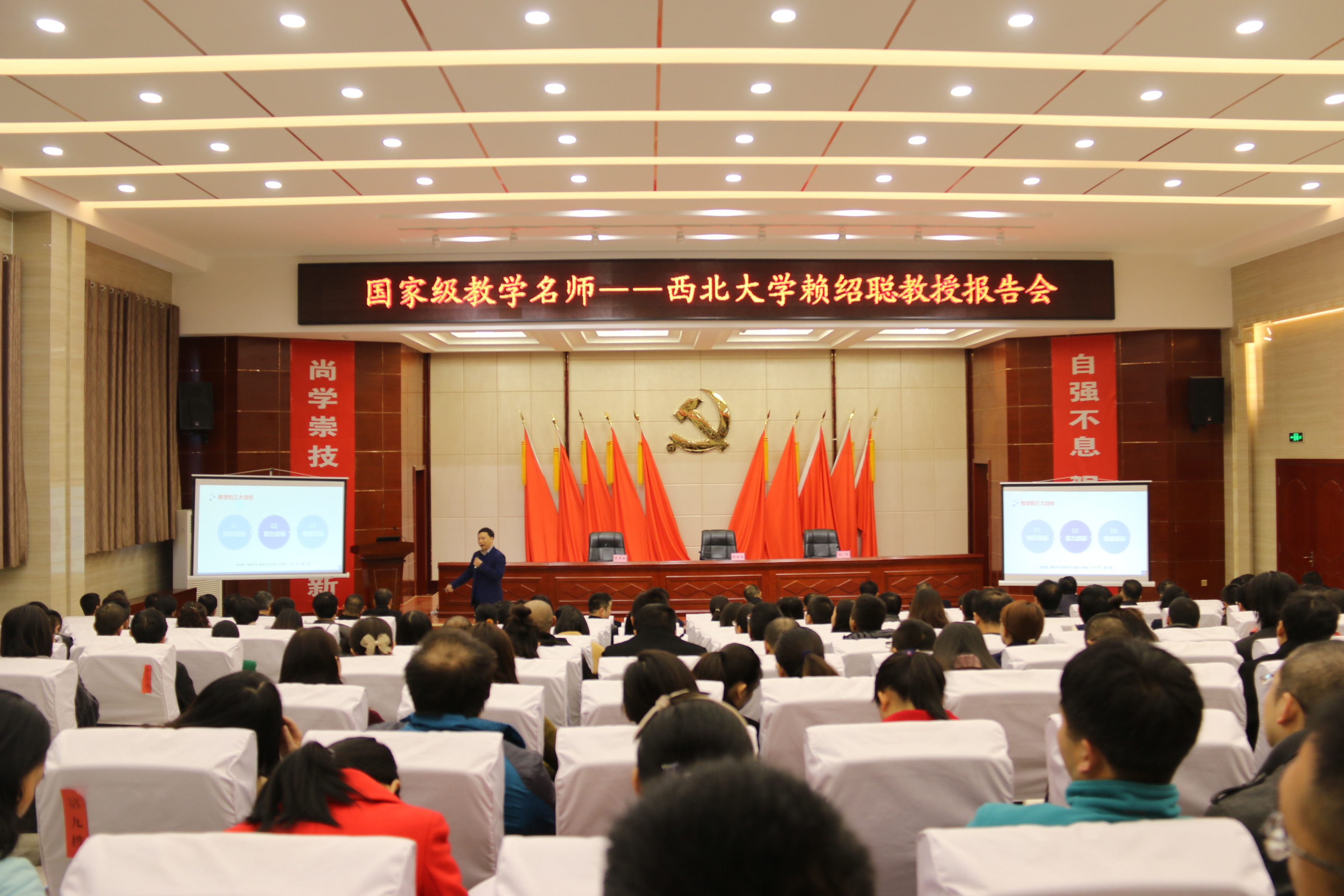 11月11日上午,西北地區(qū)高校教師教學(xué)發(fā)展中心聯(lián)盟“名師西部高校行”走進(jìn)我院。國家級教學(xué)名師、西北大學(xué)副校長賴紹聰教授作題為“如何做好課程教學(xué)設(shè)計”的專題報告。聯(lián)盟執(zhí)行秘書長、西安交通大學(xué)教師教學(xué)發(fā)展中心專家吉康敏參加了報告會,報告會由學(xué)院黨委書記、院長趙明教授主持。
