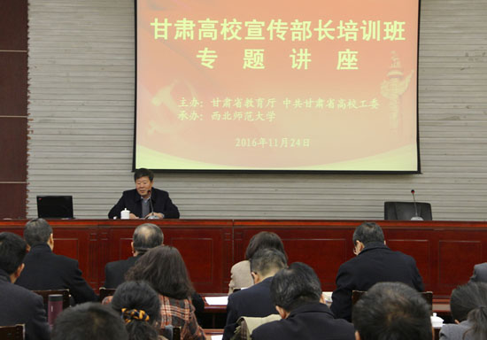 培訓(xùn)期間,甘肅省教育廳廳長(zhǎng)、黨組書記王嘉毅教授,甘肅省委網(wǎng)信辦主任梁和平,西北師范大學(xué)黨委書記陳克恭研究員,中共甘肅省委黨校李景銘教授、肖安鹿教授等分別為培訓(xùn)班學(xué)員作了系列專題講座。