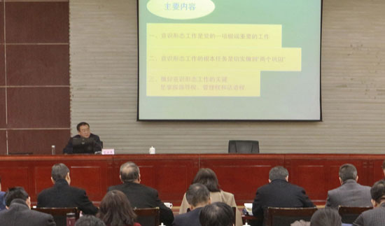 肖安鹿在題為《習(xí)近平總書記關(guān)于意識(shí)形態(tài)工作的思考》的講座中,從意識(shí)形態(tài)工作是黨的一項(xiàng)極端重要的工作,意識(shí)形態(tài)工作的根本任務(wù)是貫徹落實(shí)“兩個(gè)鞏固”,做好意識(shí)形態(tài)工作的主要工作是掌握領(lǐng)導(dǎo)權(quán)、管理權(quán)和話語(yǔ)權(quán)等三個(gè)方面,為學(xué)員們作了深入淺出地解讀。