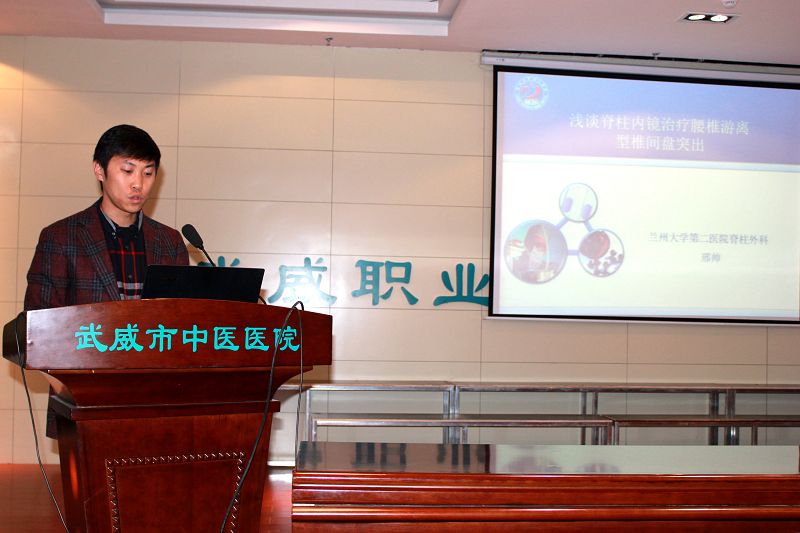 蘭大二院脊柱外科副主任醫(yī)師邢帥以《淺談脊柱內(nèi)鏡治療腰椎游離型椎間盤突出》為題,講授游離型腰椎間盤突出癥經(jīng)椎間盤鏡下椎間盤髓核摘除手術(shù)治療路徑及效果。在場醫(yī)務(wù)人員就該技術(shù)的路徑與方法,醫(yī)療安全性等問題,與邢帥醫(yī)師展開熱烈討論。邢帥認(rèn)為,鏡下手術(shù)治療游離型腰椎間盤突出癥具有手術(shù)安全、創(chuàng)傷小、費用低、術(shù)后脊柱穩(wěn)定性好等優(yōu)點,值得臨床推廣應(yīng)用。