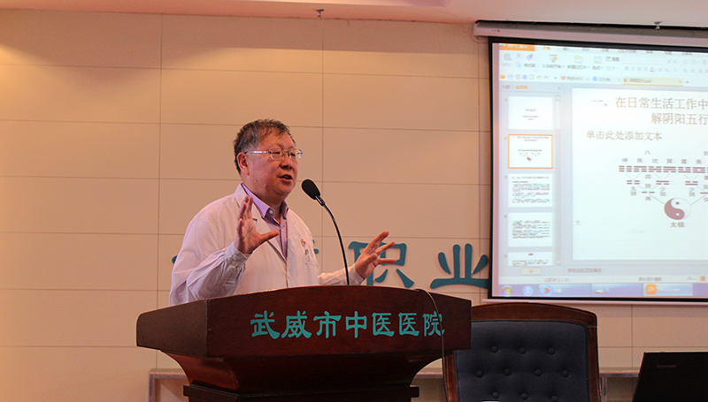 為了提高全院護理人員的中醫(yī)基礎知識水平, 12月12日下午,學院附屬中醫(yī)院護理部在內科七樓會議室舉辦護理人員中醫(yī)基礎知識學習會。會議邀請康復中心主任,中醫(yī)針灸主任醫(yī)師張國忠為全院150多名護理工作者作題為《在日常生活中如何應用理解陰陽五行》的中醫(yī)知識講座。