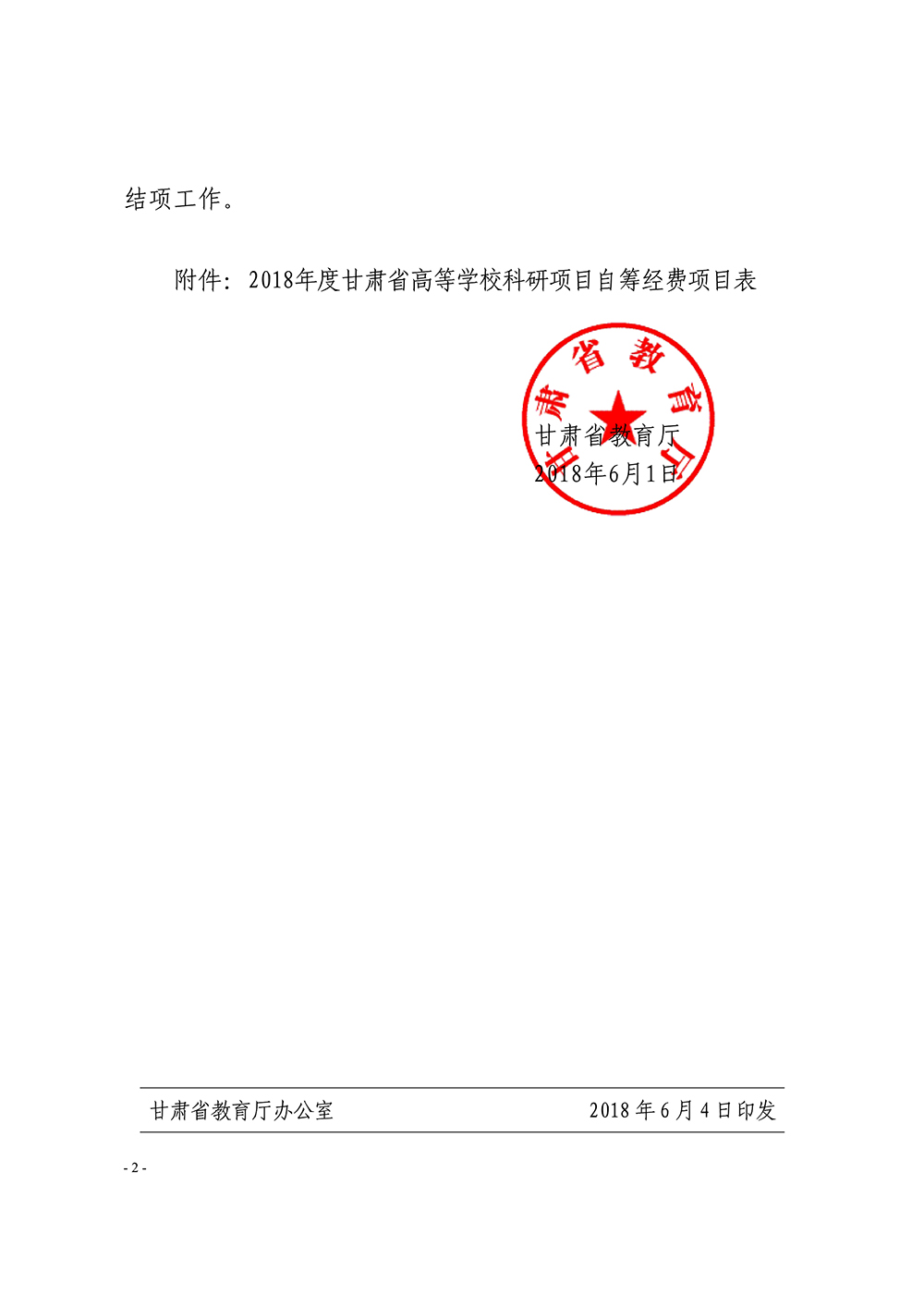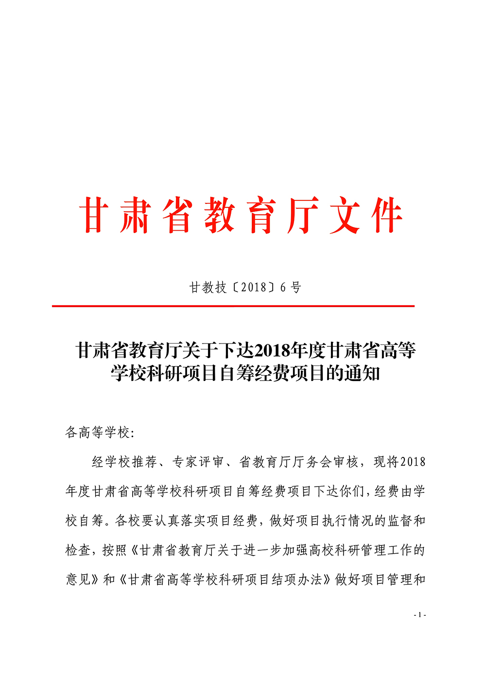 甘肅省教育廳關(guān)于下達(dá)2018年度甘肅省高等學(xué)??蒲许椖孔曰I經(jīng)費項目的通知