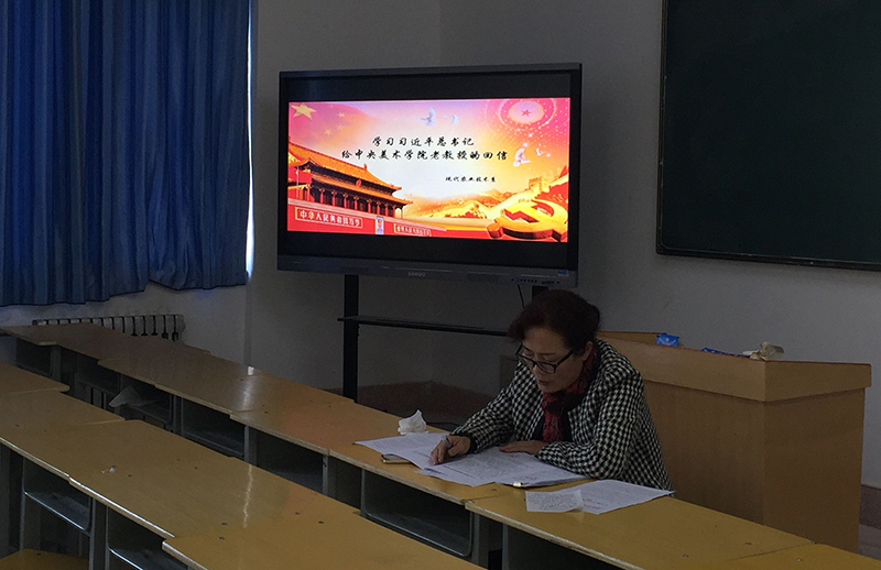 晏素珍要求,一要在全系迅速掀起學(xué)習(xí)習(xí)近平總書記給中央美術(shù)學(xué)院8位老教授回信精神的熱潮,把精神傳達(dá)到全體師生,并結(jié)合習(xí)總書記文藝工作座談會講話精神和全國文代會、作代會的講話精神,結(jié)合全國宣傳思想工作會議精神,結(jié)合本職工作,將回信精神落到實(shí)際。二要堅(jiān)定文化自信,弘揚(yáng)中華美育精神,把中華美育精神貫穿在教學(xué)創(chuàng)作、社會服務(wù)、貫穿到育人的全過程。三要在做好我系美育工作的同時,動員學(xué)校師生的力量,影響和輻射社會,讓美育發(fā)揮更大的作用。