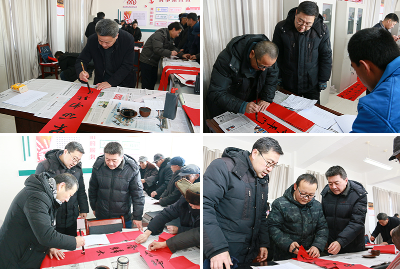 1月9日,學(xué)院扶貧幫扶點(diǎn)古浪縣黃花灘8號(hào)移民點(diǎn)熱鬧非凡,人文藝術(shù)教育系黨總支開展了一場(chǎng)喜慶活潑的“喜迎佳節(jié)、送春聯(lián)文化進(jìn)萬(wàn)家”主題黨日活動(dòng),村委會(huì)內(nèi)外圍滿了欣賞書畫的干部群眾。