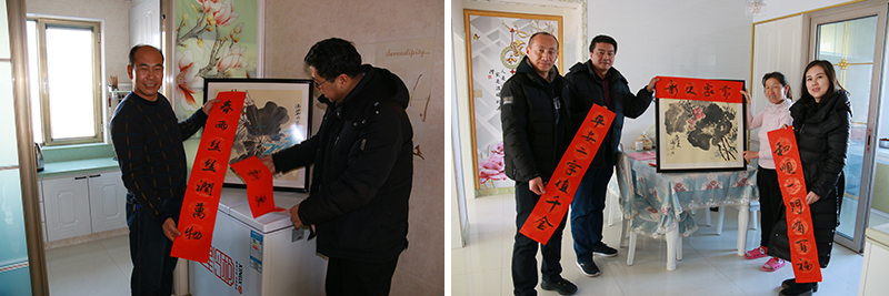 在寫完300余幅春聯(lián)后,幫扶干部將春聯(lián)、繪畫作品送到幫扶對象家中,將新春的祝福和慰問一一送達(dá),與他們交心談心拉家常,傳達(dá)中央的各項(xiàng)會議精神及惠民政策,確保貧困戶過一個(gè)溫暖祥和的春節(jié)。