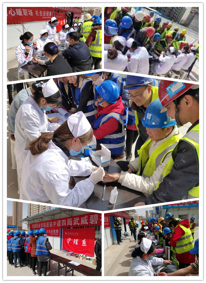 為大力踐行雷鋒精神,營造尊重農(nóng)民工、關(guān)愛農(nóng)民工、幫助農(nóng)民工的良好氛圍,3月23日,武威市疾控中心與武威職業(yè)學(xué)院護(hù)理系分團(tuán)委的志愿者們攜手走進(jìn)武威市中建四局的建設(shè)基地開展關(guān)愛農(nóng)民工志愿服務(wù)活動(dòng)。此次活動(dòng)由護(hù)理系教師楊杰帶隊(duì)。