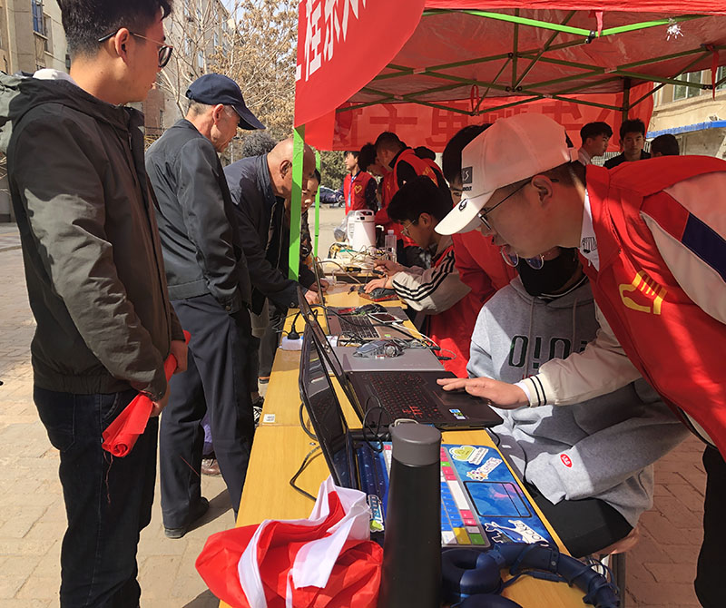 3月23日上午,我系小牛頓電子協(xié)會和計算機協(xié)會的志愿者們,來到泰安小區(qū)開展了以“發(fā)揚雷鋒精神,科技服務(wù)進社區(qū)”為主題的家電、電腦義務(wù)維修活動。志愿者們對小區(qū)居民送來的電水壺、電飯煲、微波爐、影碟機等家電進行了維修,受到了小區(qū)居民的歡迎。志愿者們還不辭辛苦,上門對有故障的電腦進行重裝系統(tǒng)、更新驅(qū)動等服務(wù),師生們認真負責、一絲不茍的精神得到了居民們的贊許。