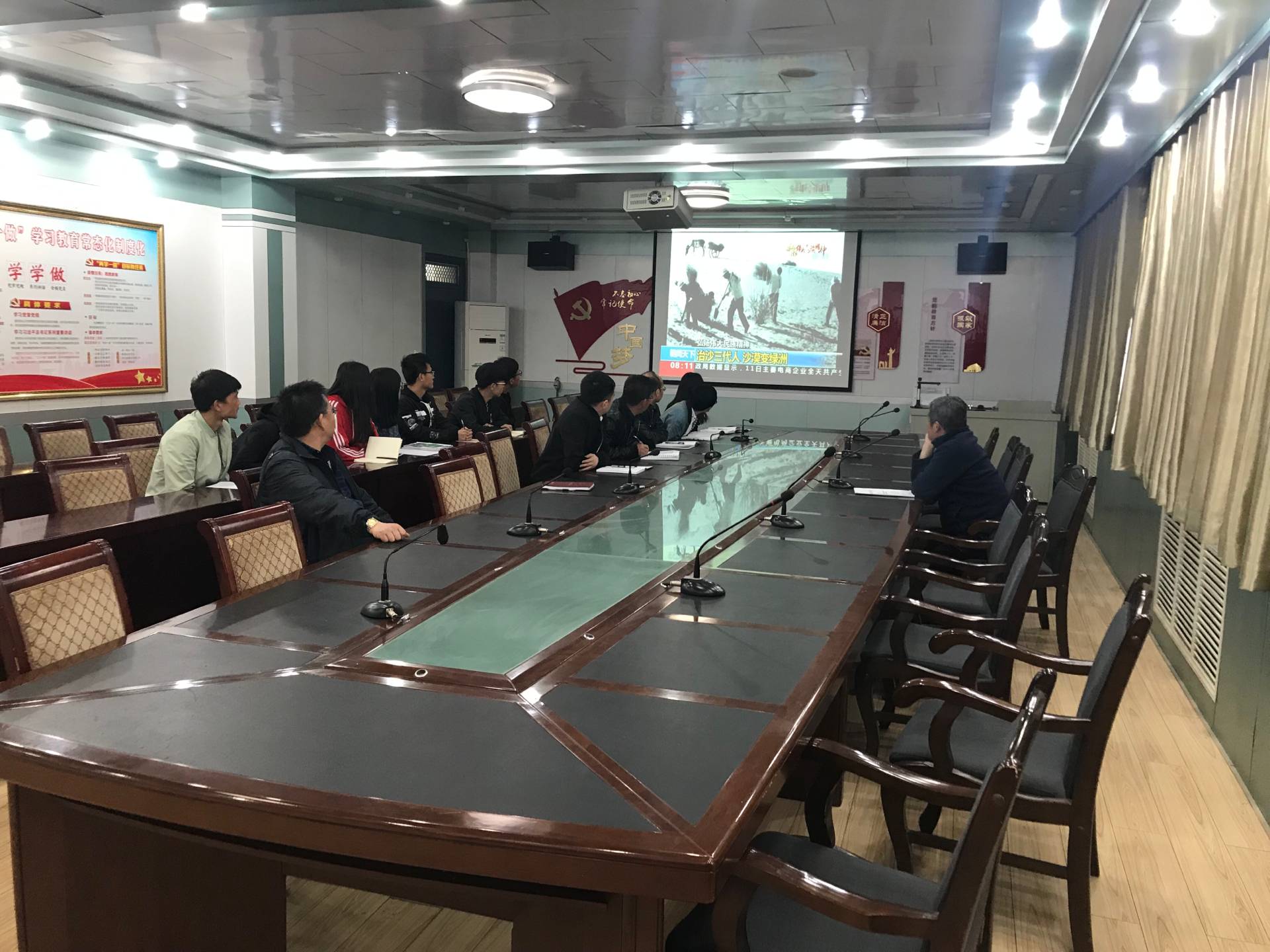 4月4日,建筑工程系黨總支組織全體黨員和入黨積極分子在博學(xué)樓黨員活動室召開“時代楷模-八步沙六老漢治沙造林先進群體”集中學(xué)習(xí)會。