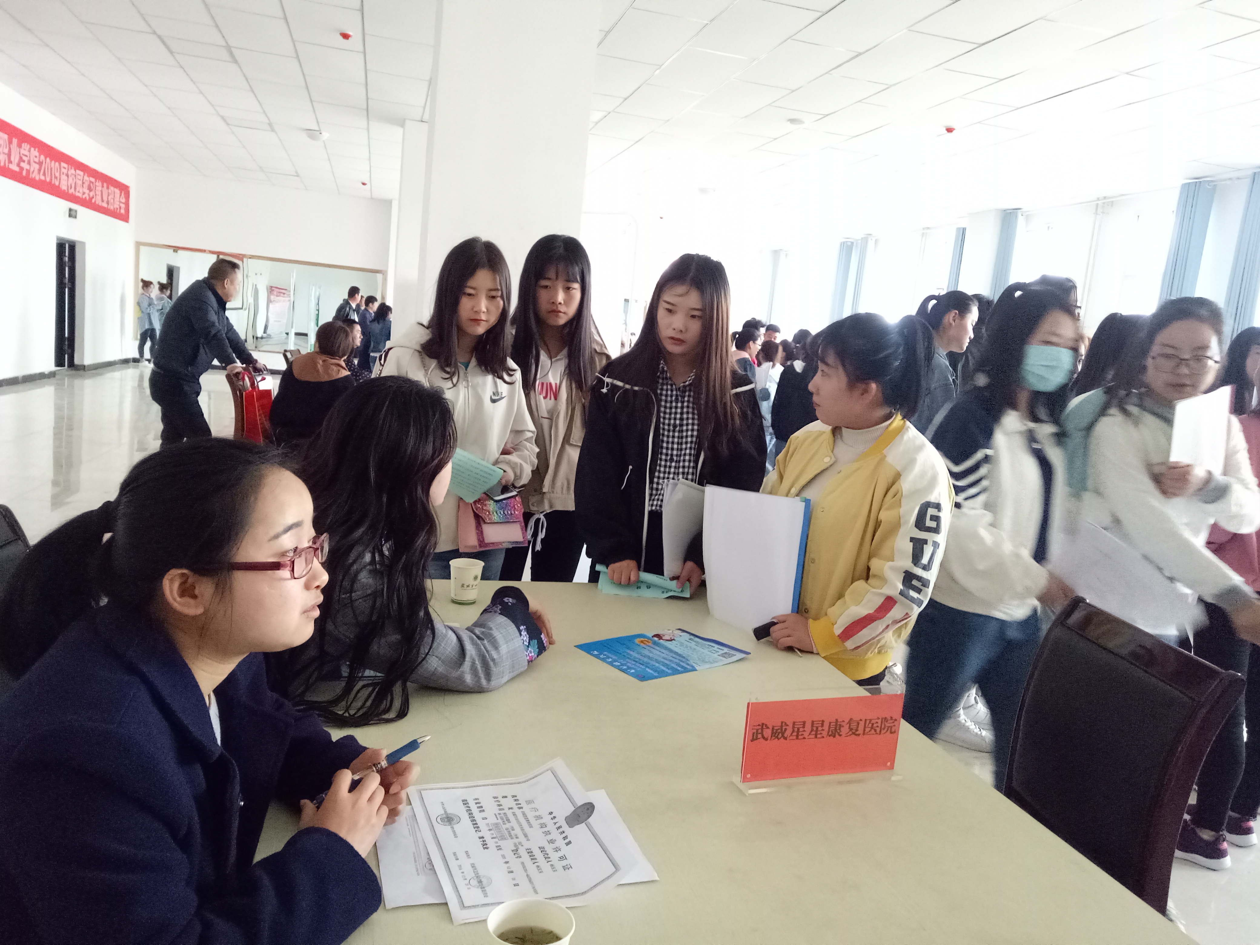 參加本次招聘會的共有來自省內(nèi)外醫(yī)療相關(guān)單位10家,包括東莞定遠陶齒制品有限公司、康泰健美醫(yī)療科技(深圳)有限公司、武威遠方藥業(yè)、武威市西藝義齒制作有限公司、?武威寶山口腔醫(yī)院、紅山窯衛(wèi)生院、武威星星康復(fù)醫(yī)院等共提供150多個就業(yè)崗位,基本滿足我系四個專業(yè)畢業(yè)的就業(yè)需求。
