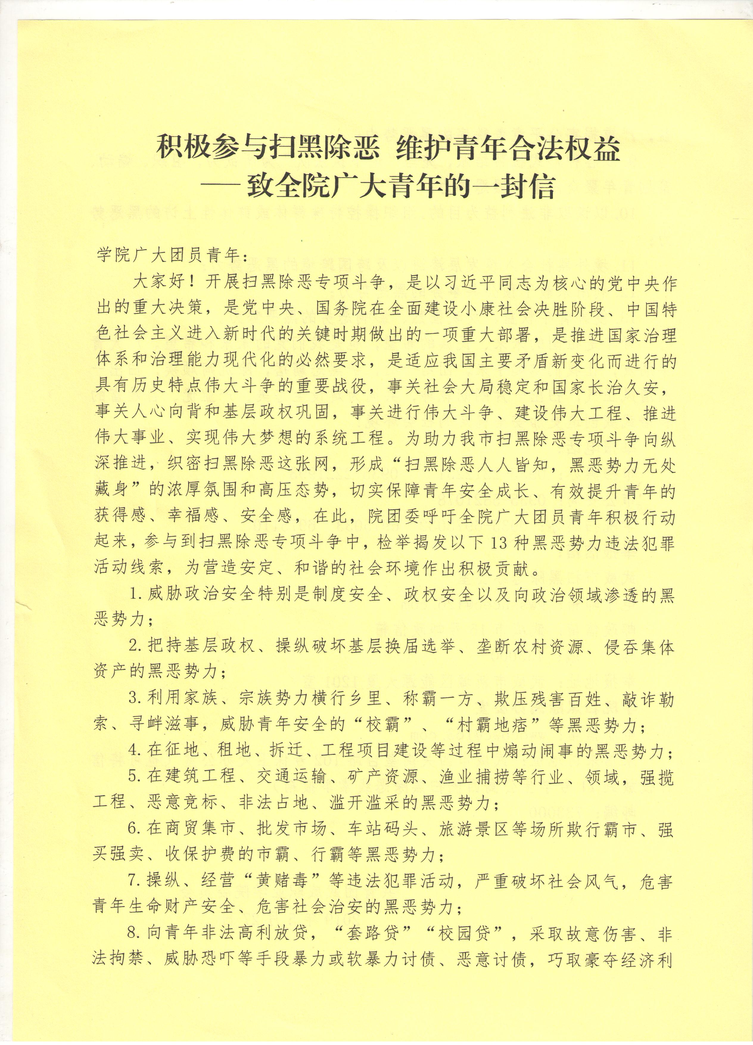 轉(zhuǎn):積極參與掃黑除惡,維護青年合法權(quán)益—致全院廣大青年的一封信