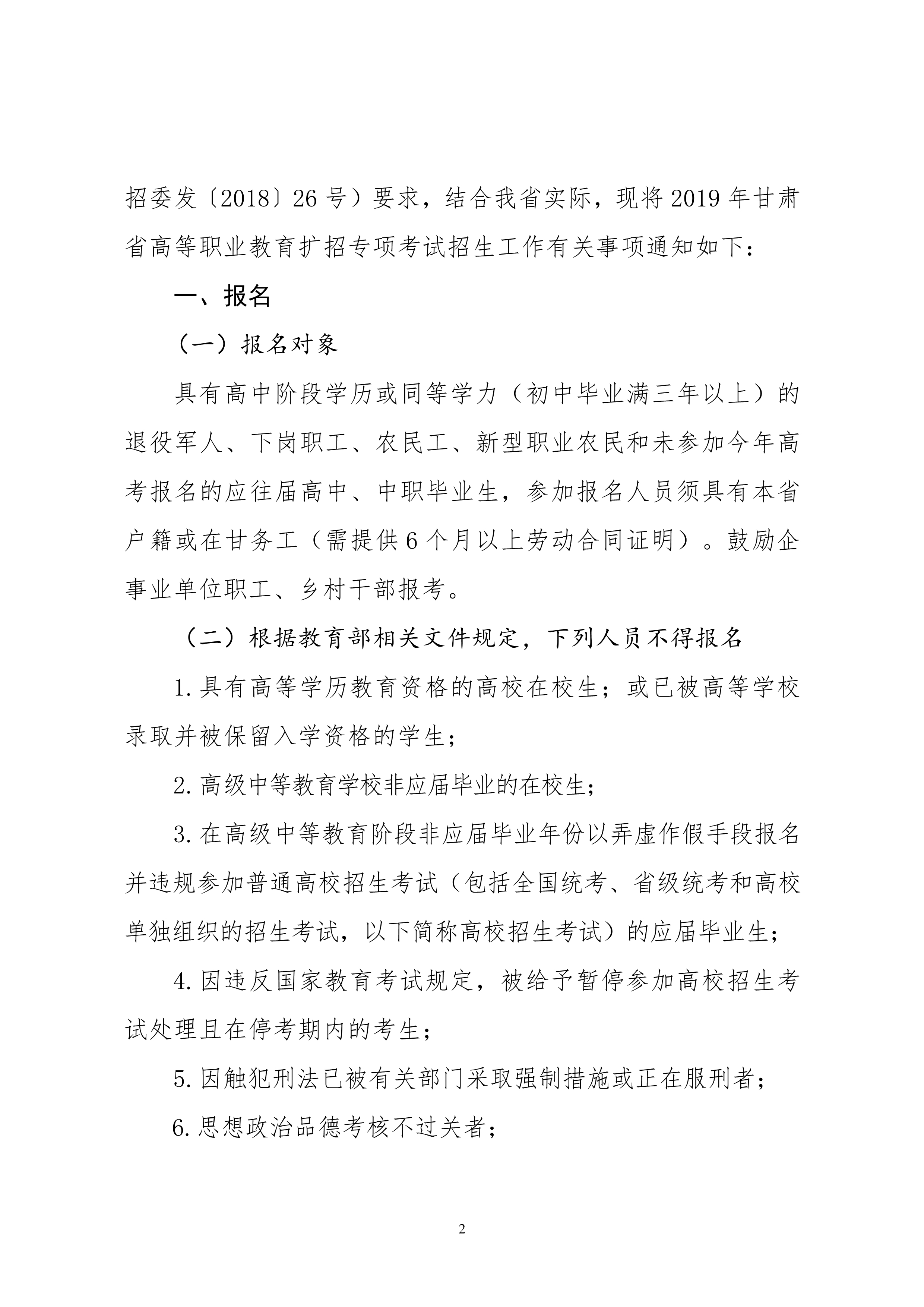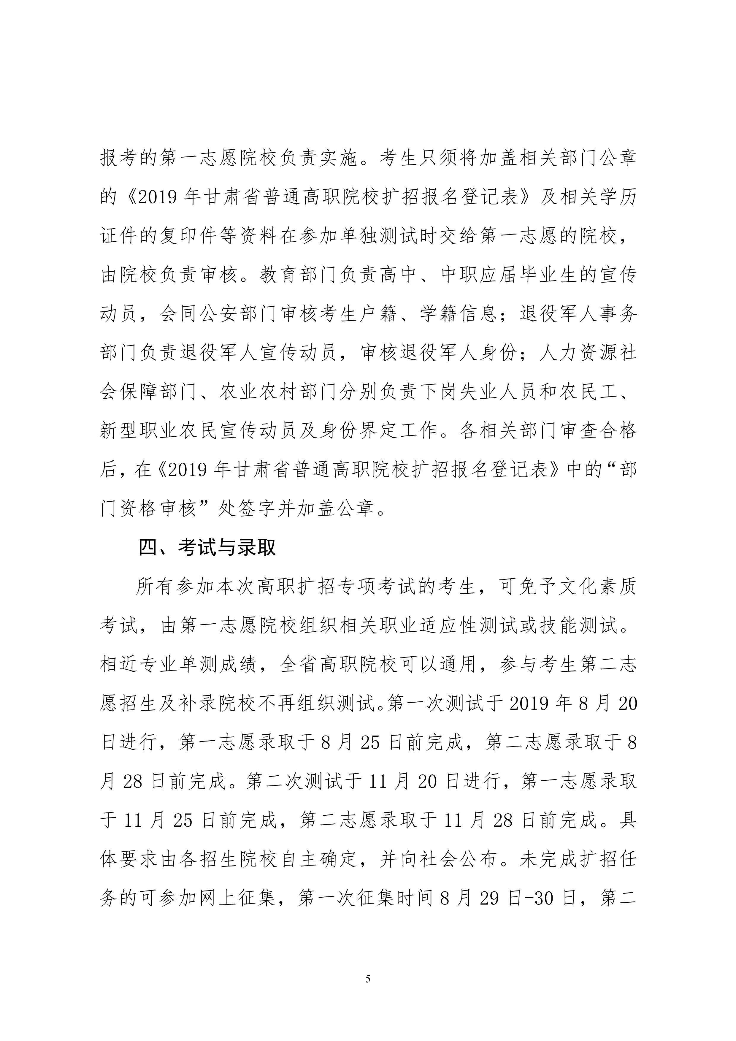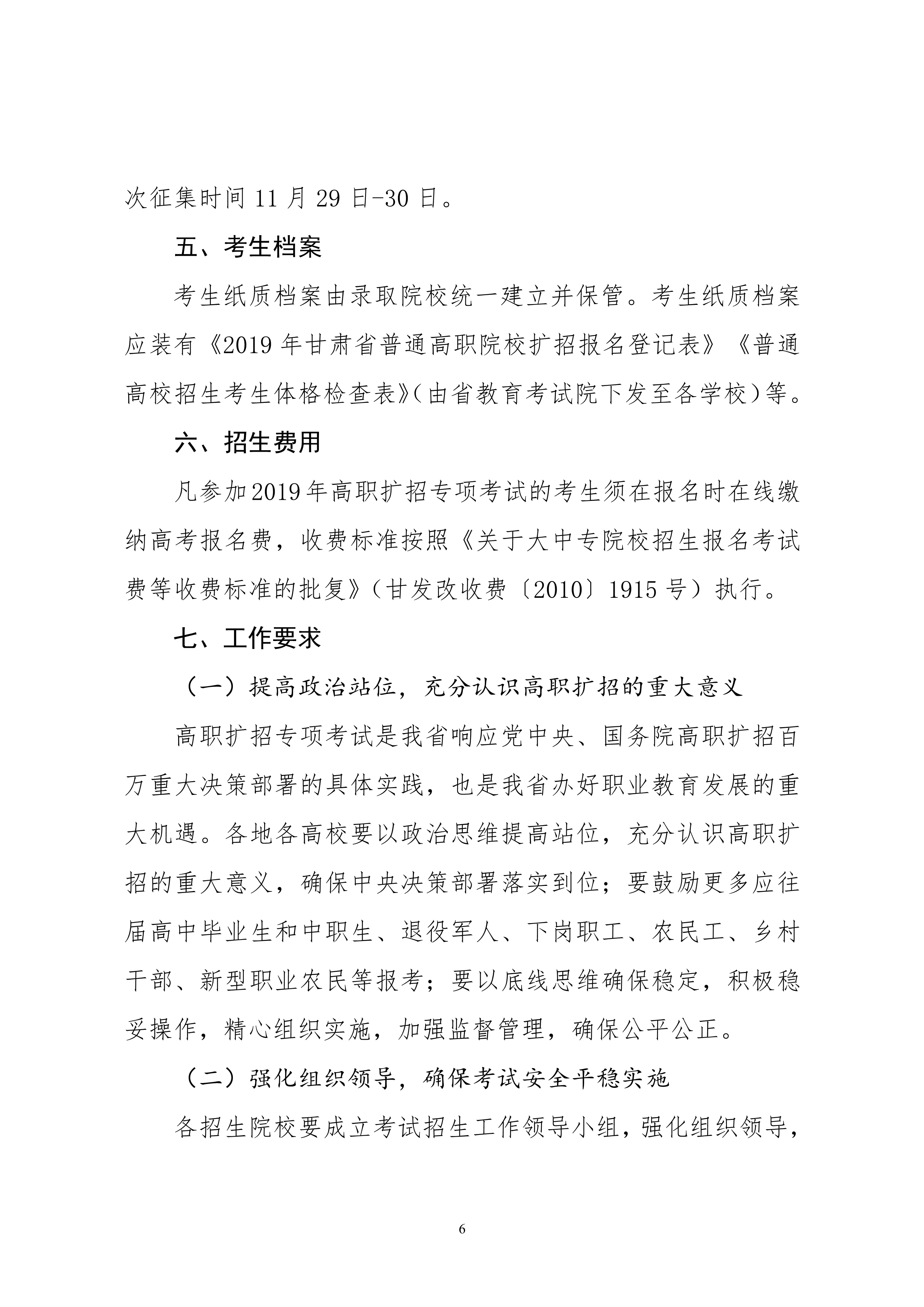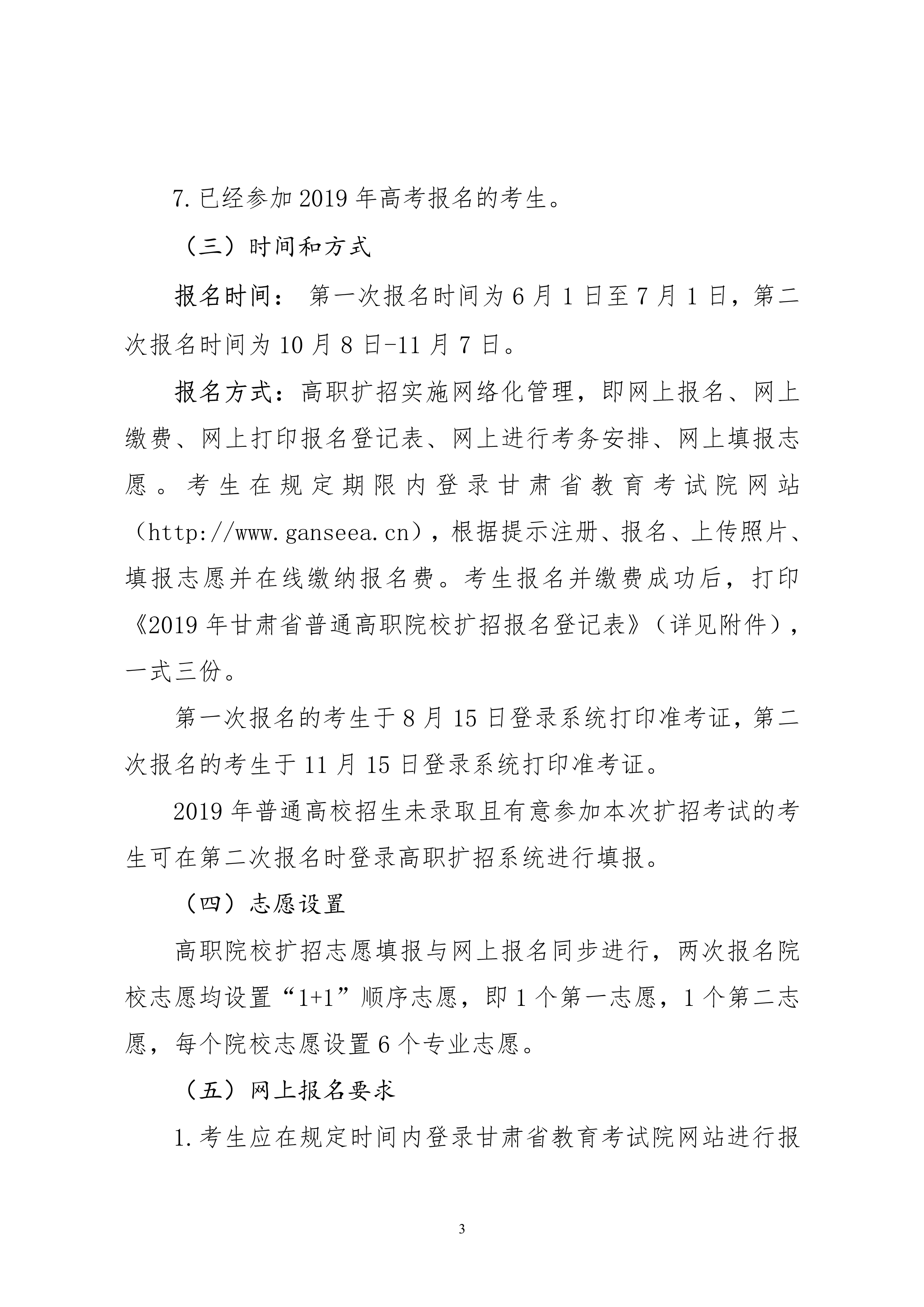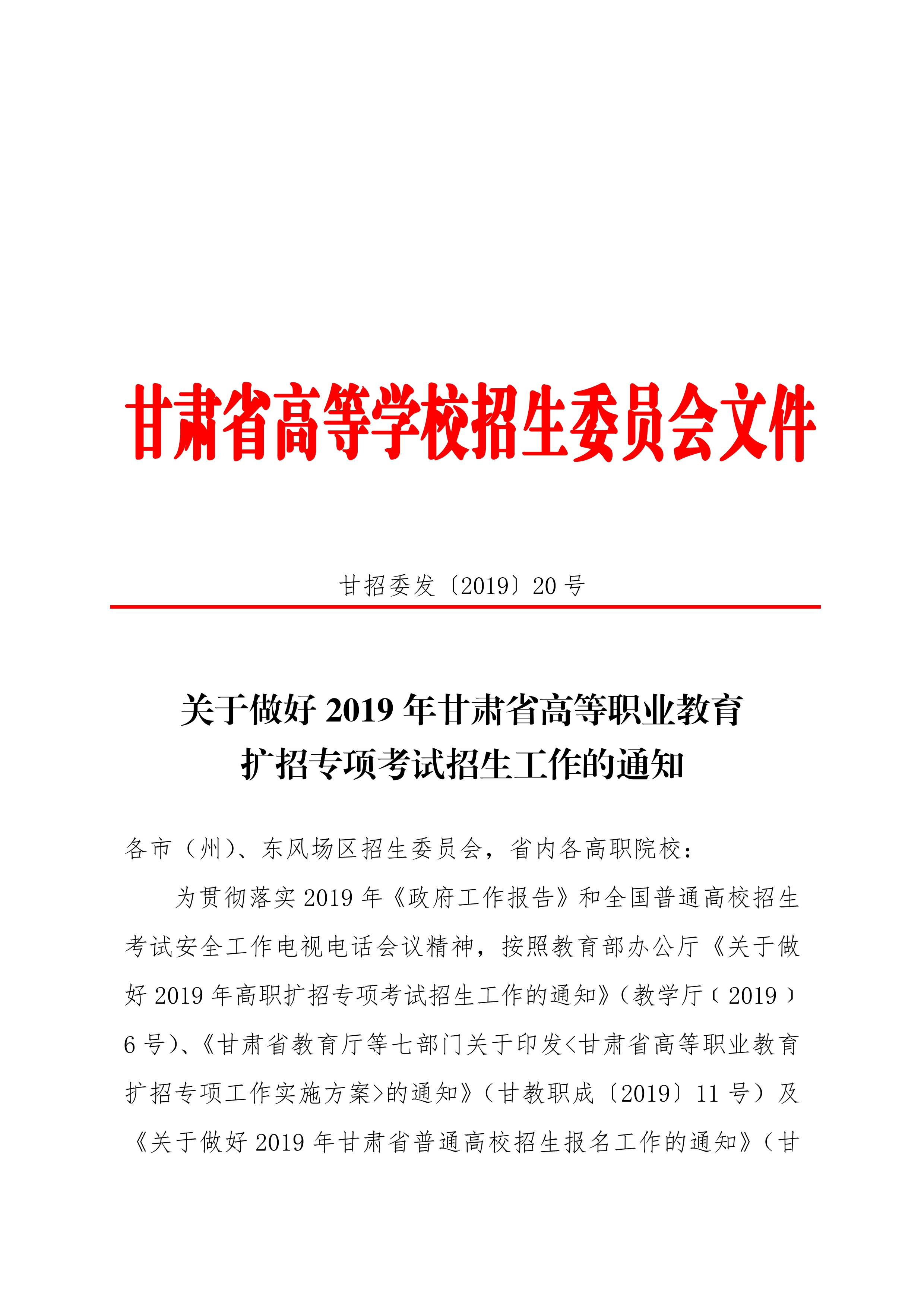 19年關(guān)于做好2019年甘肅省高等職業(yè)教育擴(kuò)招專項考試招生工作的通知