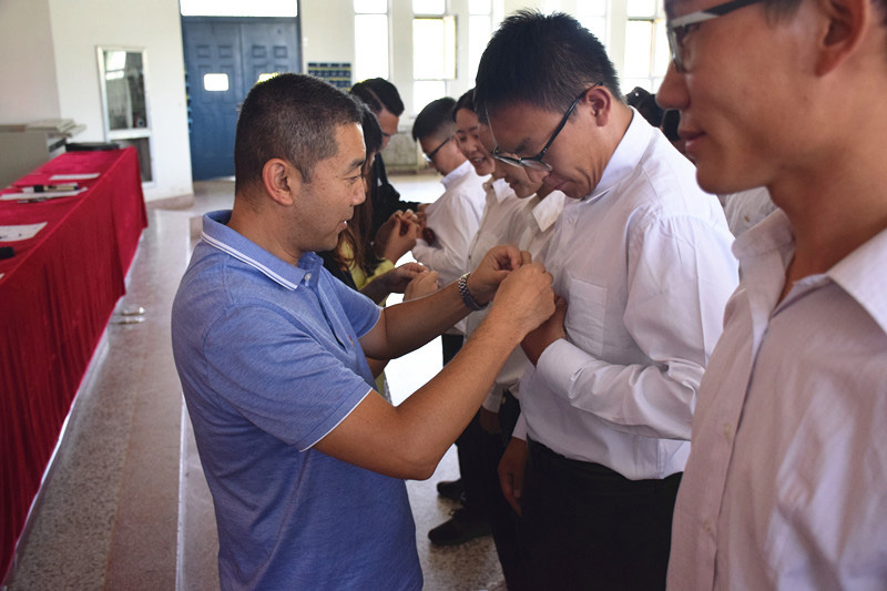 羅小勇為新黨員佩戴黨徽,并代表學(xué)院黨委對(duì)新入黨的56名預(yù)備黨員表示熱烈的祝賀和歡迎。他強(qiáng)調(diào),作為預(yù)備黨員,一要恪守入黨誓詞,踐行莊嚴(yán)承諾,堅(jiān)定不移地從思想和行動(dòng)上與黨組織保持高度一致,牢固樹(shù)立“四個(gè)意識(shí)”,增強(qiáng)“四個(gè)自信”,堅(jiān)決做到“兩個(gè)維護(hù)”,激發(fā)奮發(fā)向上的學(xué)習(xí)、生活和工作熱情,努力營(yíng)造踏實(shí)務(wù)實(shí)的學(xué)習(xí)氛圍;二要充分發(fā)揮先鋒模范作用,在各自的學(xué)習(xí)生活中體現(xiàn)黨的先進(jìn)性,成為同學(xué)中的旗幟標(biāo)桿力量;三要牢記全心全意為人民服務(wù)的宗旨,努力實(shí)踐,立志成為中國(guó)特色社會(huì)主義事業(yè)奮斗終身的有用人才。