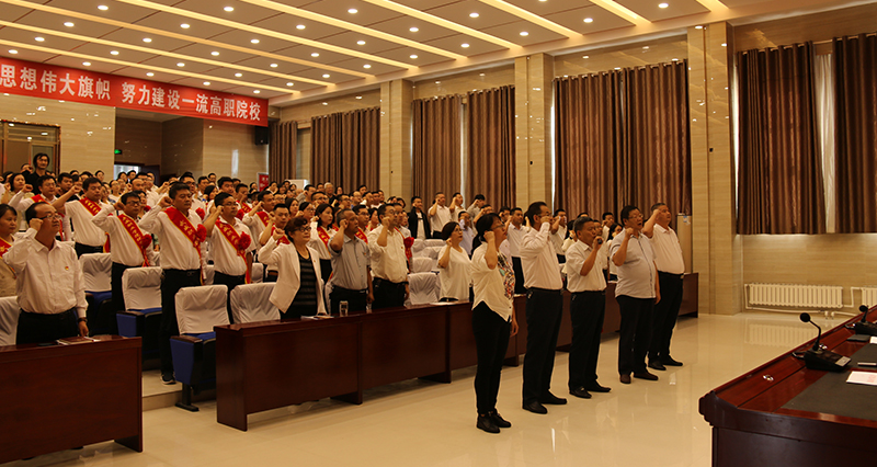 以“慶祝新中國七十華誕 弘揚新時代尊師風尚”為主題的教師節(jié)慶祝大會在莊嚴的《國歌》聲中拉開帷幕。學院黨委書記、院長趙明帶領全體教師重溫了教師誓詞,鏗鏘有力的誓詞、莊嚴的承諾,進一步堅定了廣大教師立德樹人的理想和信念。黨委副書記翟存祥領學了高校教師行為準則,對高校教師行為提出了要求。