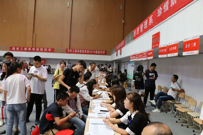學(xué)院安排專車前往武威火車站、汽車站,為新生及家長(zhǎng)提供全天候接站服務(wù),并為送行家長(zhǎng)專設(shè)了休息區(qū)。安保人員指揮車輛有序停放,保障安全有序的校園環(huán)境。工作人員引導(dǎo)新生辦理入校手續(xù),報(bào)到、繳費(fèi)、入班、物品發(fā)放等各個(gè)環(huán)節(jié)有條不紊、高效暢通。體育館的電子屏上不斷播放學(xué)院宣傳片、大型公益短片,增強(qiáng)了新生及家長(zhǎng)對(duì)學(xué)院的了解、認(rèn)可和熱愛。為幫助家庭經(jīng)濟(jì)困難學(xué)生順利入學(xué),學(xué)院還設(shè)立了“綠色通道”服務(wù)點(diǎn),為家庭經(jīng)濟(jì)困難學(xué)生辦理緩交(減免)學(xué)費(fèi)和生源地信用助學(xué)貸款登記手續(xù)。