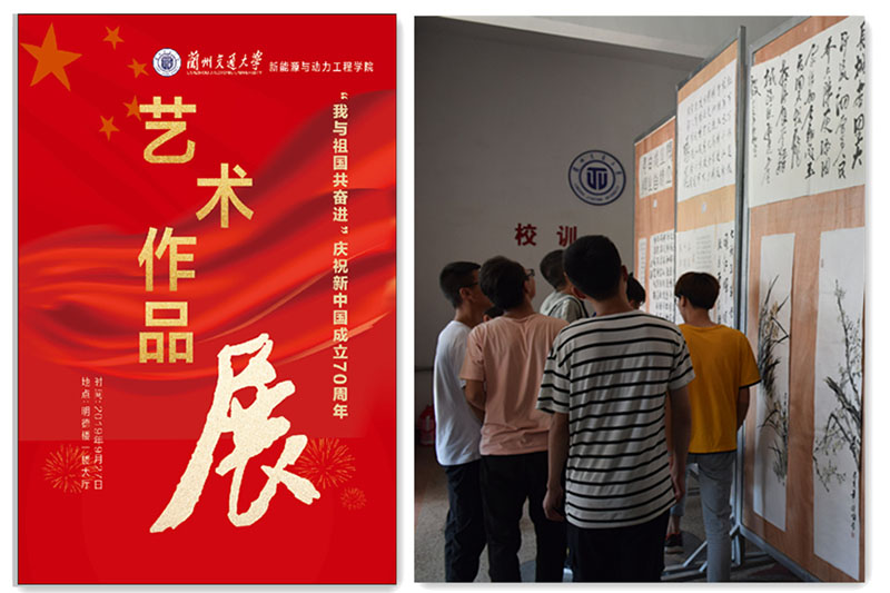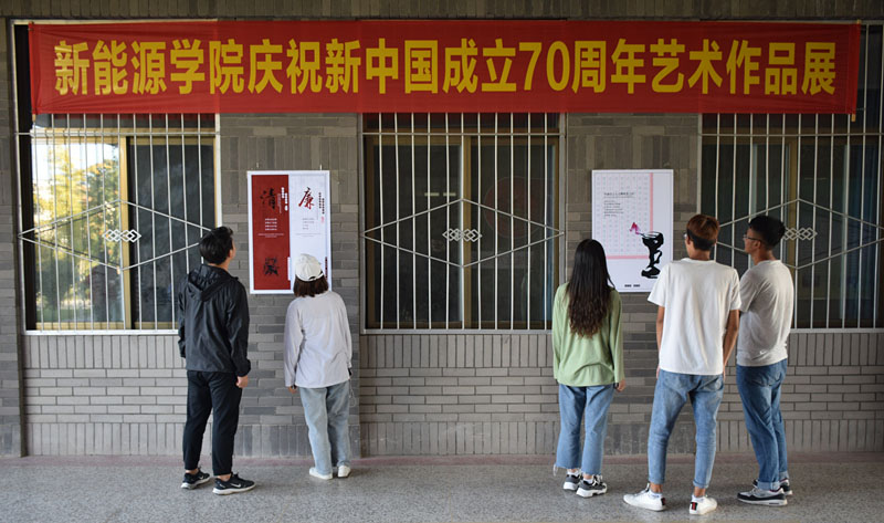 9月27日,新能源與動力工程學(xué)院慶祝新中國成立70周年藝術(shù)作品展在明德樓大廳舉辦。