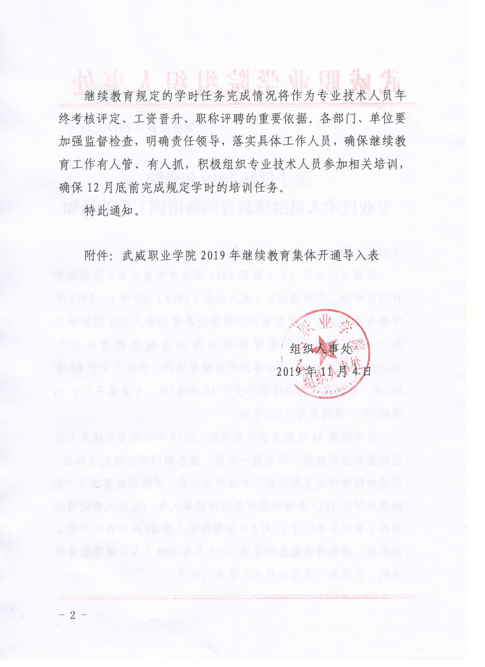 關(guān)于做好2019年學院專業(yè)技術(shù)人員繼續(xù)教育網(wǎng)絡(luò)培訓工作的通知