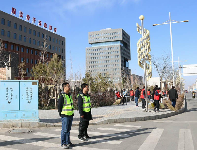 為認(rèn)真落實全市創(chuàng)城工作推進(jìn)會會議精神,提升全國文明城市創(chuàng)建工作水平,建設(shè)人民滿意的幸福城市,在市委市政府及創(chuàng)城辦的統(tǒng)一安排下,11月15日下午,在學(xué)院副院長王守云、張開禮的帶領(lǐng)下,我院100多名黨員干部組成的志愿者服務(wù)隊,集中在我院的劃定區(qū)域,進(jìn)行常態(tài)化的文明交通勸導(dǎo)和環(huán)境衛(wèi)生整治活動。