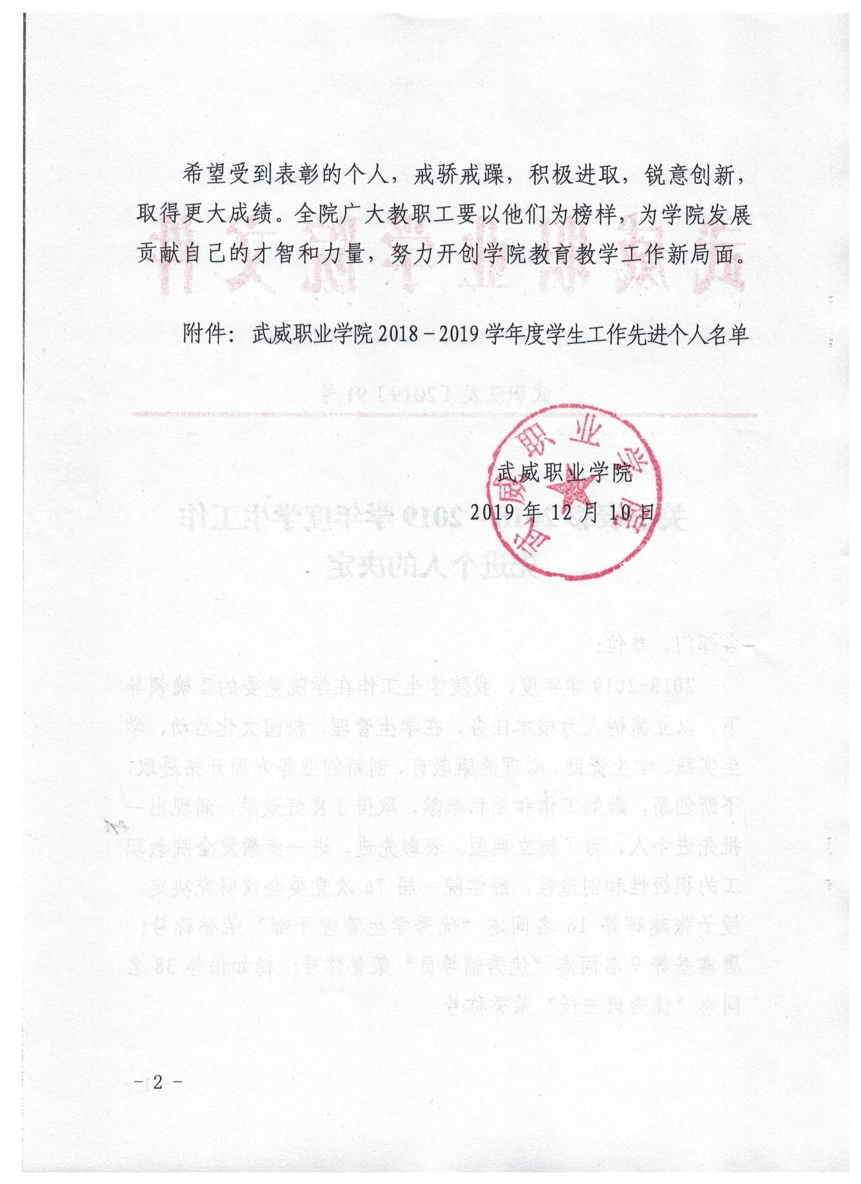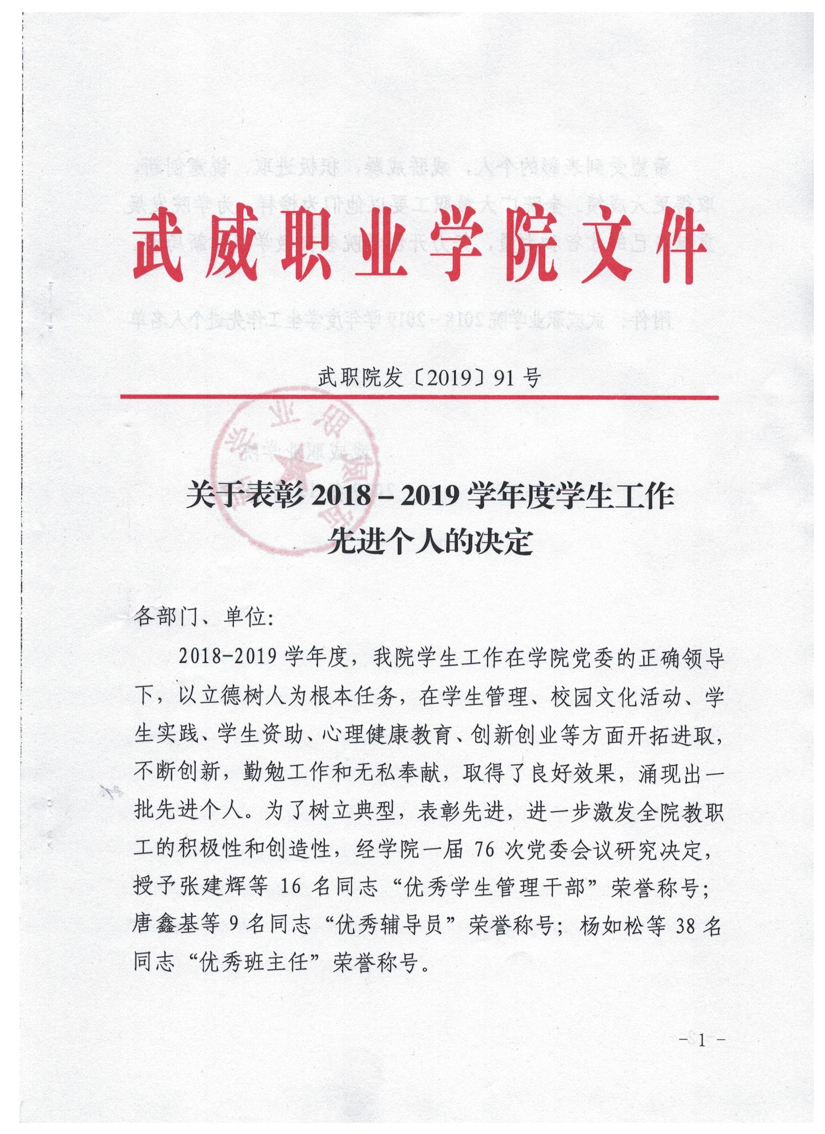 關(guān)于表彰2018-2019學(xué)年度學(xué)生工作先進(jìn)個人的決定