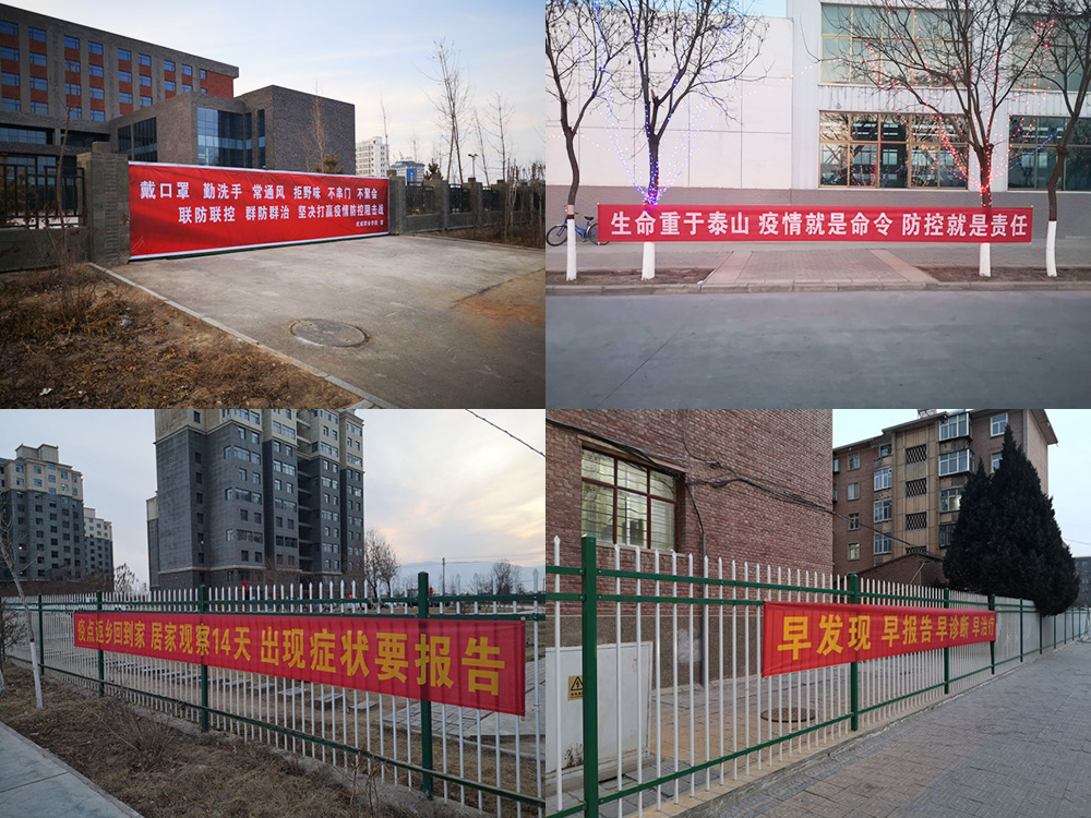 學(xué)院面向師生和社會(huì)人員,加強(qiáng)疫情防控內(nèi)外宣傳。在校園圍墻醒目位置設(shè)置內(nèi)容為:“戴口罩、勤洗手、常通風(fēng)、拒野味、不串門(mén)、不聚會(huì)”,“聯(lián)防聯(lián)控、群防群治、堅(jiān)決打贏(yíng)疫情防控阻擊戰(zhàn)”等宣傳標(biāo)語(yǔ);在校園內(nèi)、家屬區(qū)等地顯著位置設(shè)置:“生命重于泰山、疫情就是命令、防控就是責(zé)任”,“重科學(xué)、聽(tīng)官宣、不信謠、不傳謠”,“疫點(diǎn)返鄉(xiāng)回到家、居家觀(guān)察14天、出現(xiàn)癥狀要報(bào)告”,“早發(fā)現(xiàn)、早報(bào)告、早診斷、早治療”等宣傳標(biāo)語(yǔ)、橫幅。通過(guò)線(xiàn)上線(xiàn)下、校內(nèi)校外全方位教育、宣傳、號(hào)召、引導(dǎo),營(yíng)造了師生和社會(huì)人員高度重視、科學(xué)嚴(yán)謹(jǐn)、從我做起、同舟共濟(jì)嚴(yán)格防控疫情的濃厚氛圍和戰(zhàn)勝疫情的堅(jiān)定信心,為早日打贏(yíng)疫情防控戰(zhàn)凝聚了共識(shí)、匯聚了強(qiáng)大的精神力量。