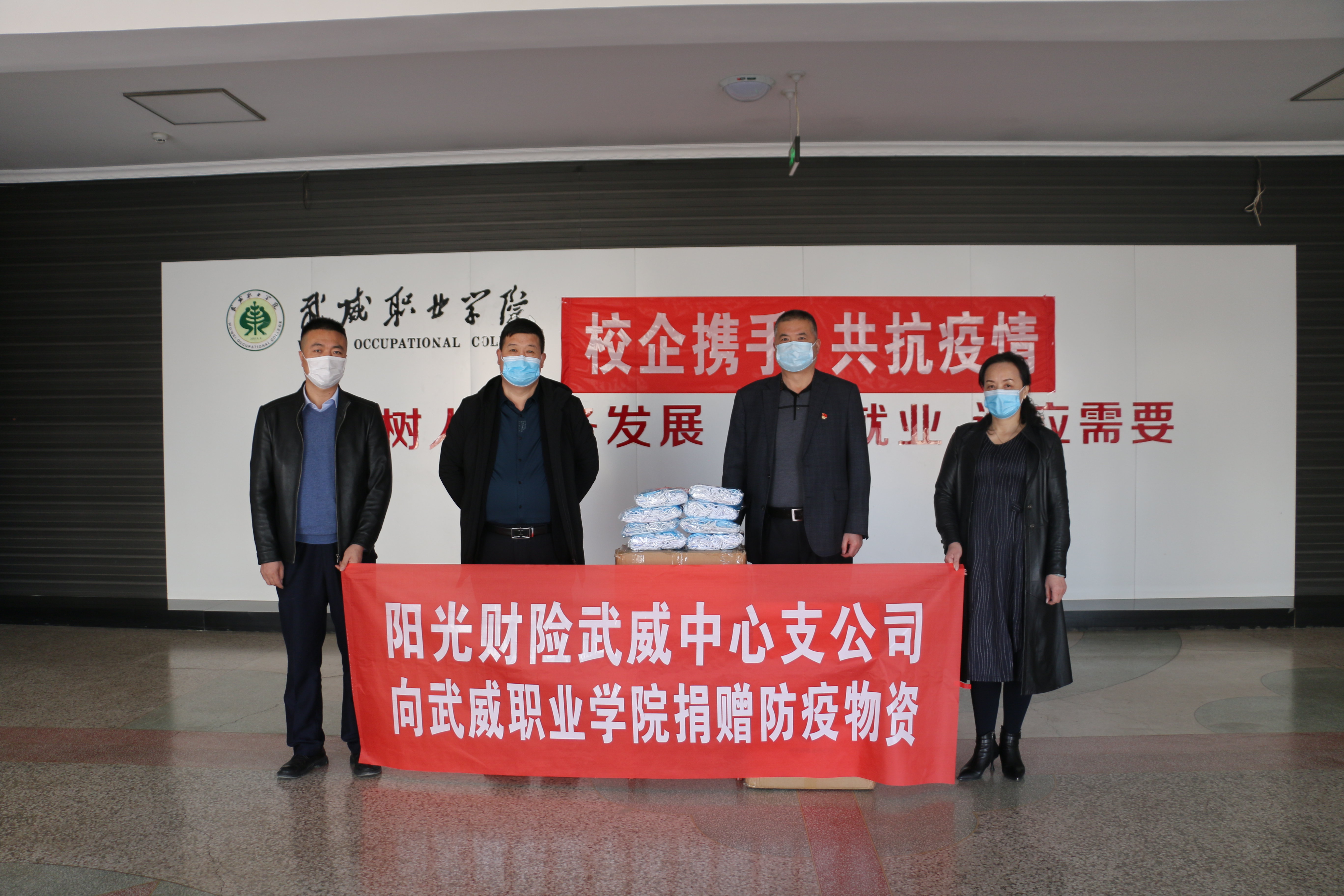 陽光財產(chǎn)保險股份有限公司武威中心支公司向?qū)W院捐贈新冠肺炎疫情物資,捐贈一次性醫(yī)用口罩5000個。