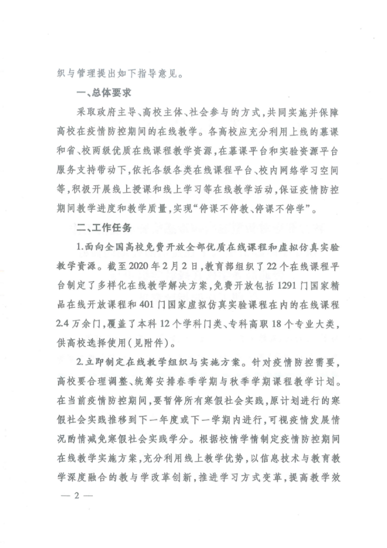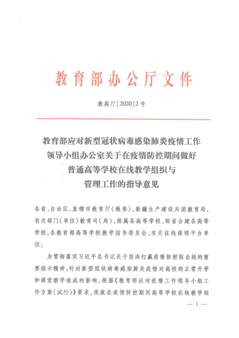 教育部做好普通高等學校在線教學組織與管理工作的指導意見