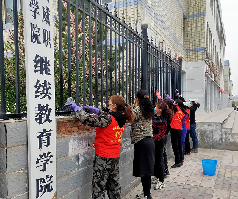 為扎實(shí)開展“三整治”“三提升”行動,有效改善城區(qū)環(huán)境,進(jìn)一步提升校園品質(zhì),建設(shè)文明校園,助力全國文明城市創(chuàng)建,為師生返校創(chuàng)造干凈、整潔、衛(wèi)生的學(xué)習(xí)工作和生活環(huán)境。按照涼州區(qū)城市管理委員會通知,結(jié)合學(xué)院實(shí)際,4月15日起,學(xué)院后勤處經(jīng)過排查,組織教職工及保潔工作人員全面開展校園“清潔亮妝”行動。