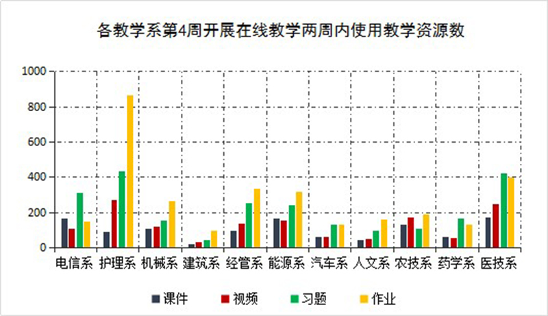 各教學(xué)系全面落實(shí)以學(xué)生為中心的教學(xué)理念,充分發(fā)揮班主任、任課教師、學(xué)生干部的監(jiān)督作用,提高在線教學(xué)成效。從各教學(xué)系整體統(tǒng)計(jì)數(shù)據(jù)看,第4周,教學(xué)資源學(xué)生訪問量達(dá)到了926633人次,學(xué)生到課127211人次,完成課后作業(yè)638次,上交學(xué)生40512人次。各門課程學(xué)習(xí)任務(wù)完成率普遍有所提高,大多數(shù)課程按照教學(xué)計(jì)劃進(jìn)度學(xué)生學(xué)習(xí)完成率已全部達(dá)到100%。