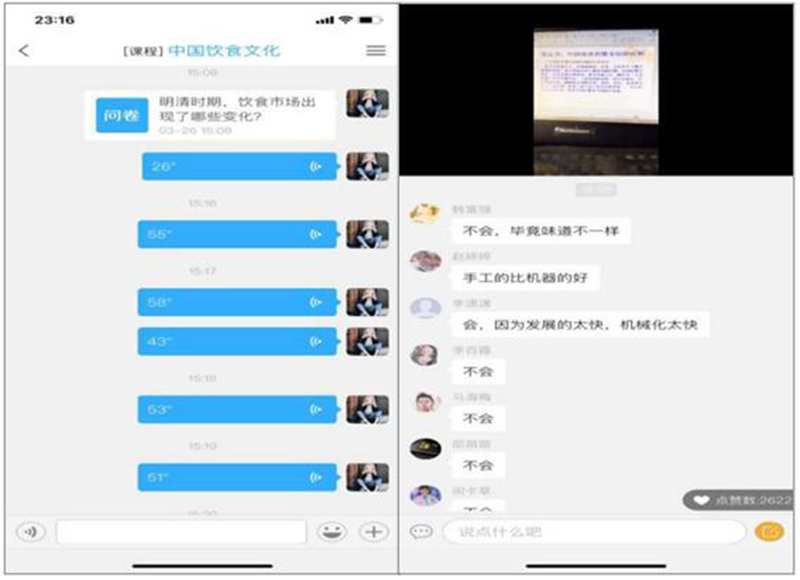 經(jīng)濟(jì)管理系張海燕老師,充分利用網(wǎng)絡(luò)資源上好線上課程,巧妙引導(dǎo)學(xué)生提高教學(xué)效果。利用“自建+在線資源優(yōu)選”的方式豐富《隴原民俗文化》《中國飲食文化》兩門課程的線上教學(xué)資源,并采用錄屏方式將網(wǎng)絡(luò)資源進(jìn)行加工,為自建課程添加教學(xué)元素。在課堂講授過程中,根據(jù)教學(xué)內(nèi)容與個(gè)人喜好靈活選擇直播、語音教學(xué)、自學(xué)+答疑等授課方式。為達(dá)到良好教學(xué)的效果,課中通過圖片、視頻、音頻、形式多樣的教學(xué)活動(dòng)、趣味性作業(yè)等激發(fā)學(xué)生自主學(xué)習(xí)的興趣,活躍課堂氣氛,并掌握學(xué)生學(xué)習(xí)動(dòng)態(tài)。