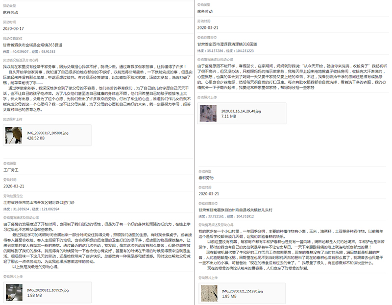 結(jié)合同學(xué)們生活和學(xué)習(xí)實(shí)際,學(xué)工處要求廣大同學(xué)積極參與志愿服務(wù)、春耕勞動、工廠務(wù)工、家務(wù)勞動等方面勞動實(shí)踐,完成每周不少于2小時的實(shí)踐鍛煉,并通過信息化平臺上報(bào)活動照片和勞動心得。