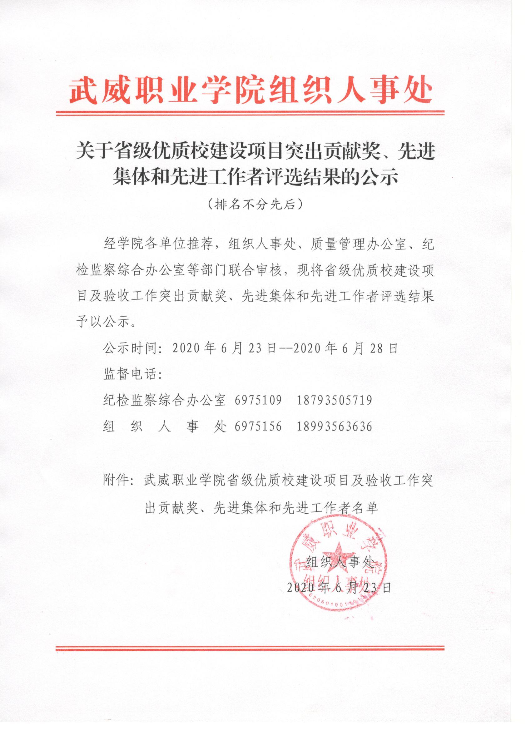 關于省級優(yōu)質(zhì)校建設項目突出貢獻獎、先進集體和先進工作者評選結(jié)果的公示