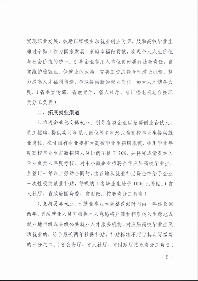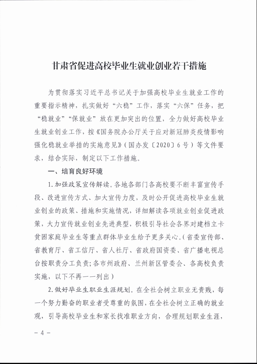 甘肅省教育廳等七部門關(guān)于印發(fā)《甘肅省促進(jìn)高校畢業(yè)生就業(yè)創(chuàng)業(yè)若干措施》的通知