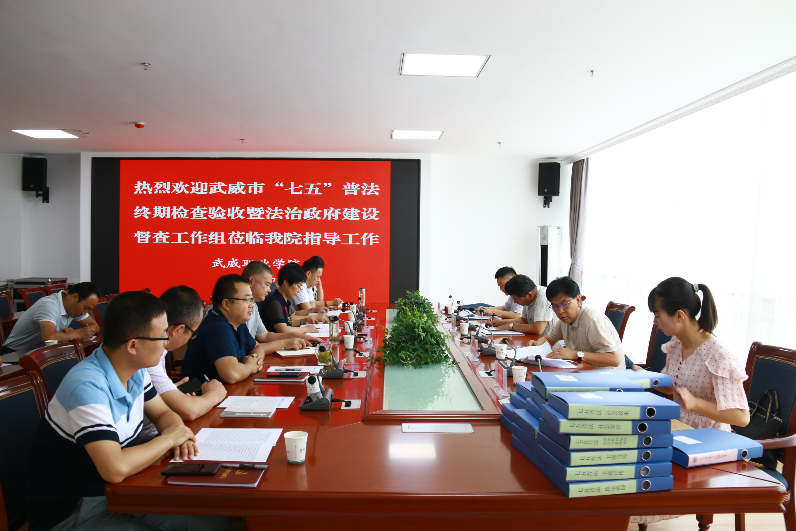 7月7日上午,武威市“七五”普法終期檢查驗收第五督察組成員、武威市委宣傳部副調(diào)研員韋國富,市司法局黨組成員、副局長傅瑞川,市公共法律服務(wù)中心主任劉文元,市司法局組織人事科科員羅瑩深入我院對“七五”普法工作開展情況和法治政府建設(shè)工作進行了終期驗收督查。學(xué)院黨委委員、副院長何毅、王守云,相關(guān)部門負責(zé)人參加檢查驗收。