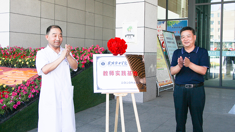 雙方負(fù)責(zé)人簽訂了《教師醫(yī)院實(shí)踐協(xié)議書(shū)》,共同為學(xué)院醫(yī)學(xué)類(lèi)專(zhuān)業(yè)雙師型教師實(shí)踐基地揭牌。