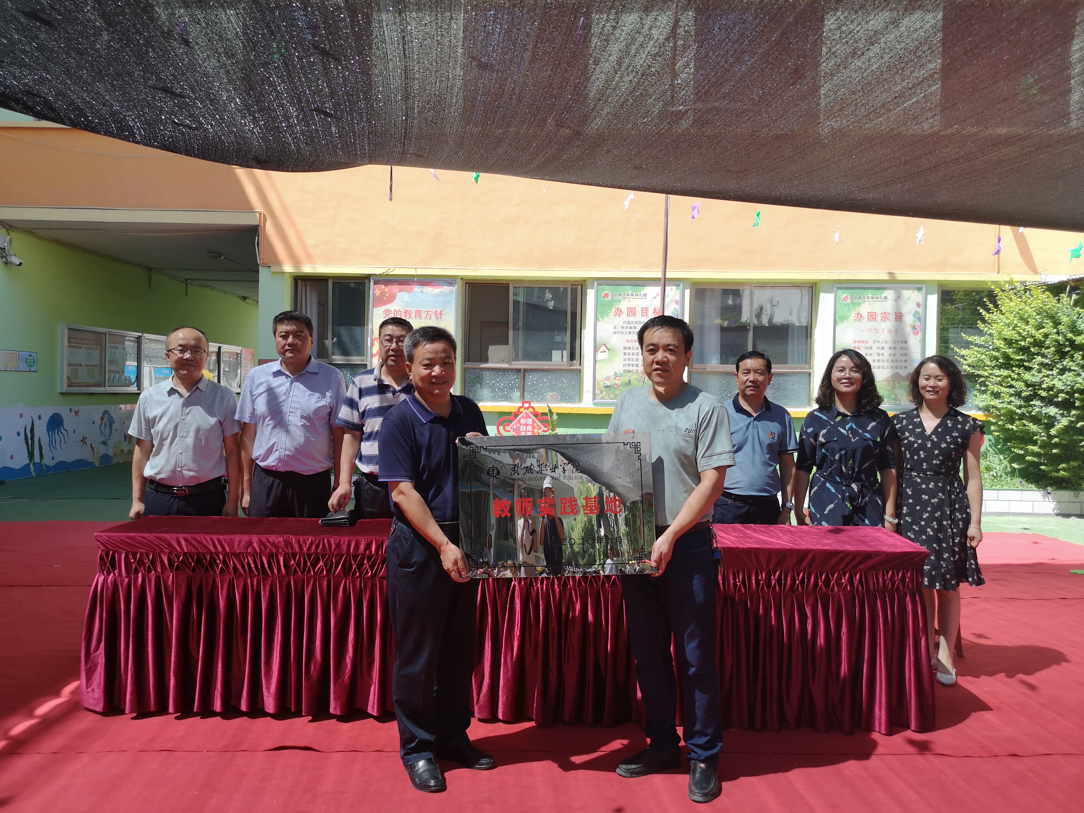 本次教師實踐基地揭牌儀式的舉行,標志著武威職業(yè)學院與武威市實驗幼兒園、涼州區(qū)和平愛彌兒幼兒園合作日趨深入,并將成為雙方合作交流、資源共享、優(yōu)勢互補、師資培養(yǎng),共同促進地方學前教育事業(yè)發(fā)展的重要平臺。同時,也是貫徹落實2020年全國職業(yè)教育教師企業(yè)實踐基地推進會和全省有效推進職業(yè)教育教師企業(yè)實踐基地與職業(yè)院校合作建設“雙師型”教師隊伍視頻會議精神,大力發(fā)展職業(yè)教育,提高教師實踐教學能力,加強“雙師型”教師隊伍建設的重要舉措。