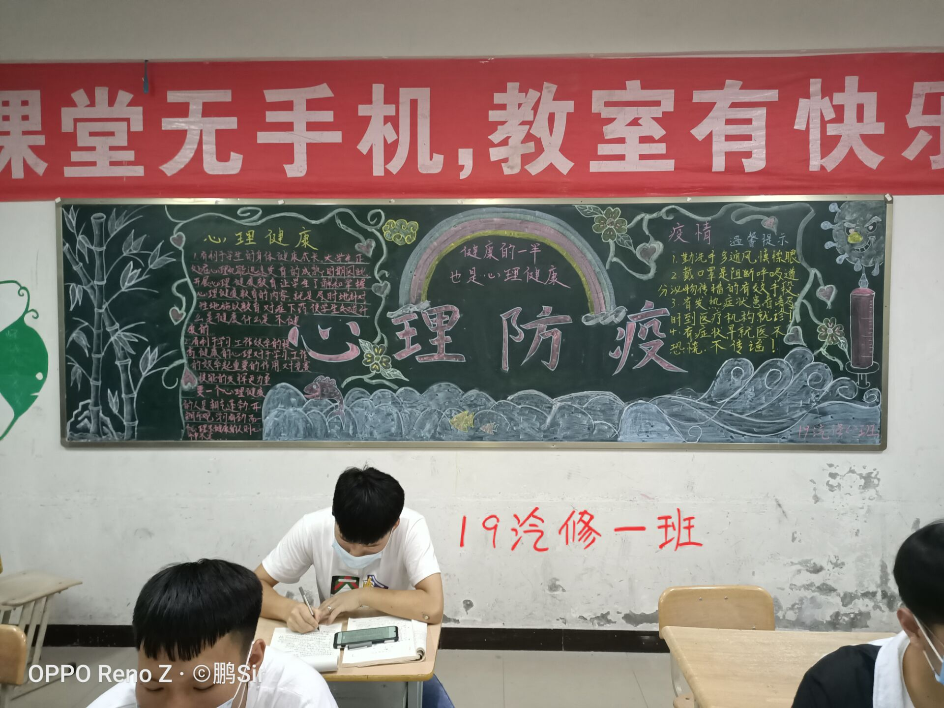 疫情期間,為了返校的大學生有更好的心理健康,提高大學生心理素質,6月8日我系分團委組織各班開展以“心理防疫”為主題的團日活動,相應開展了“心理防疫”黑板報班級比賽。